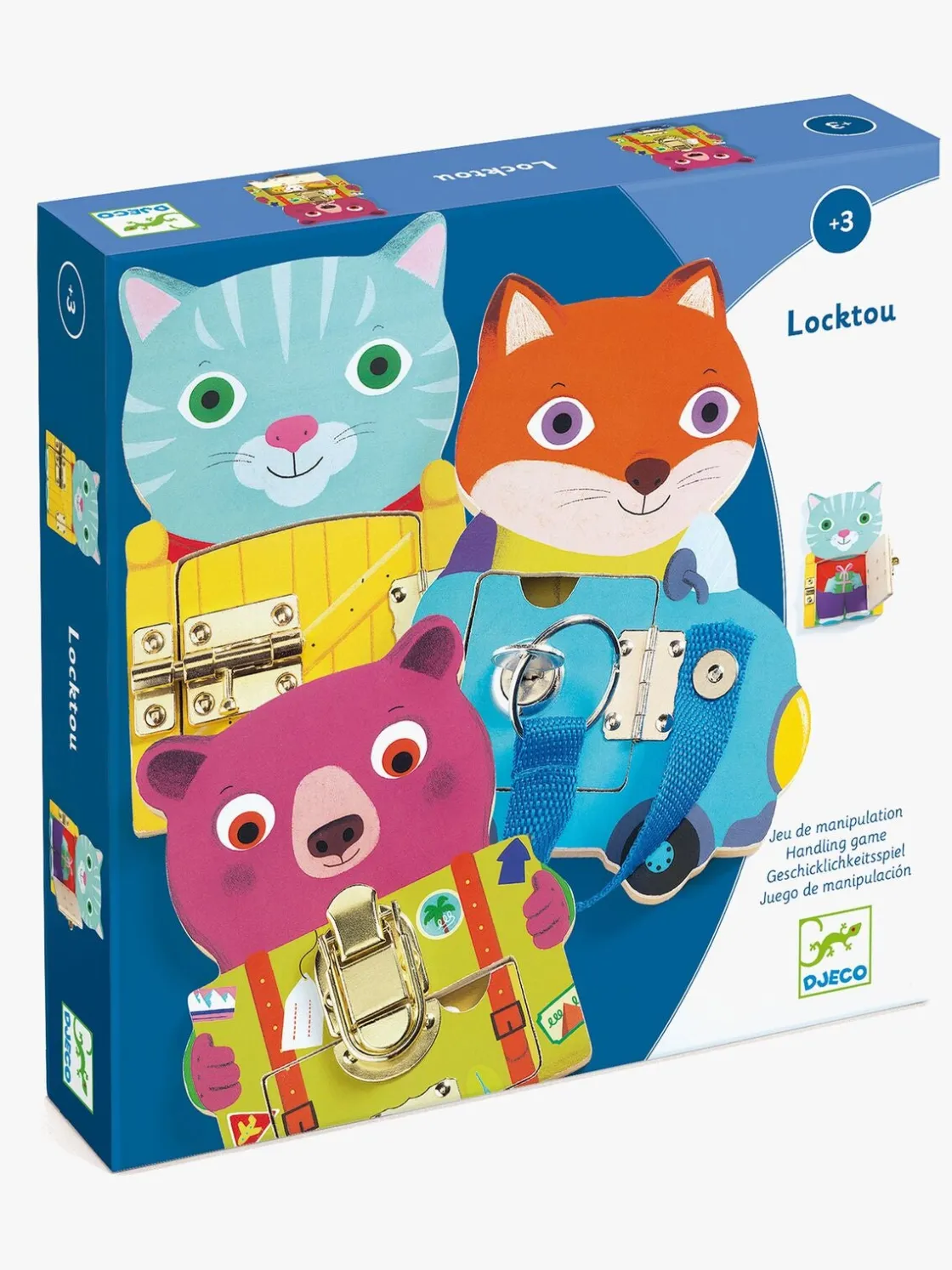 – Indeholder: 3 træfigurer med lås.