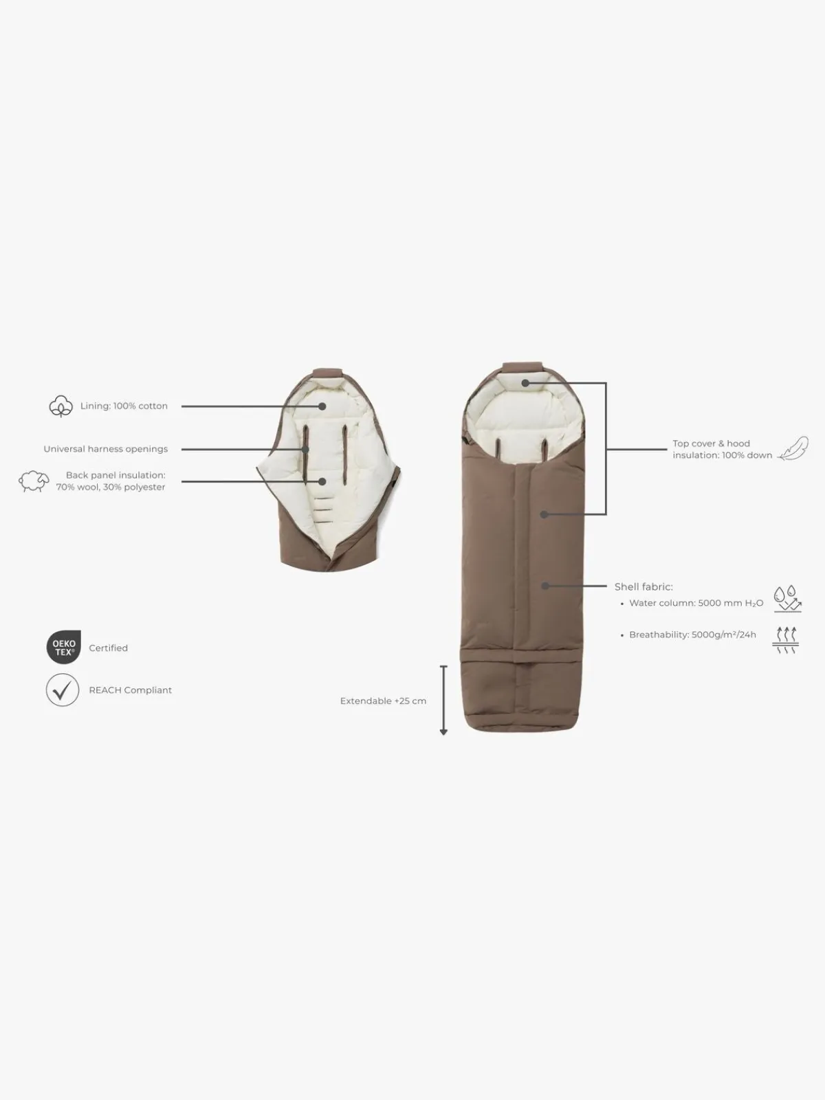 – Polstring: 50 % fjer, 50 % dun.