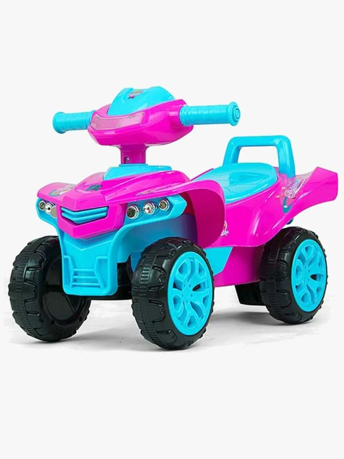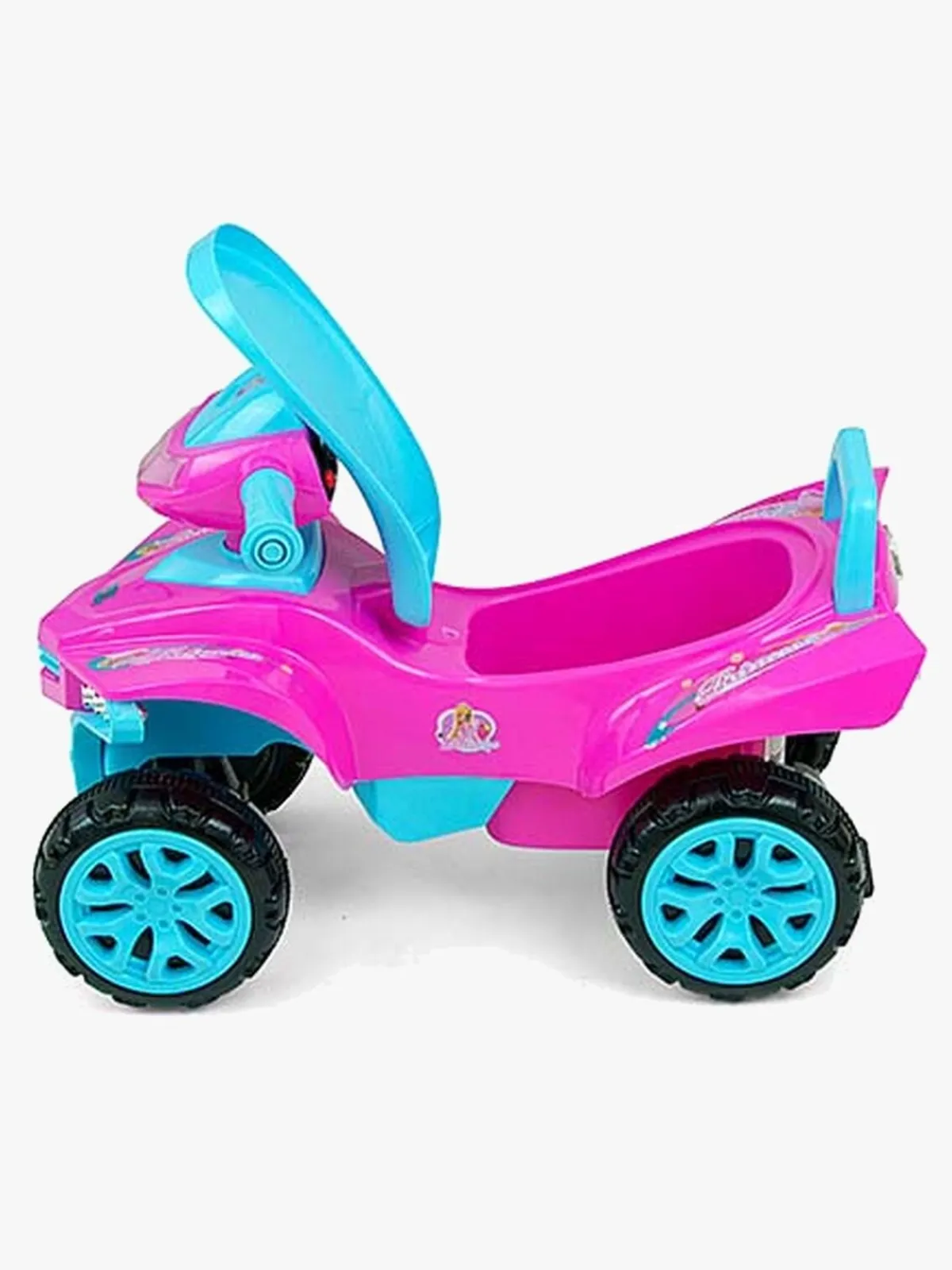 Gåbilens seje og farverige design gør den ekstra sjov at køre på. Tryk på knapperne på rattet for at aktivere de forskellige lydfunktioner og melodier. Under sædet er der et praktisk opbevaringsrum, med plads til legetøj og andre ting som dit barn vil have med på sine fartfyldte eventyr!