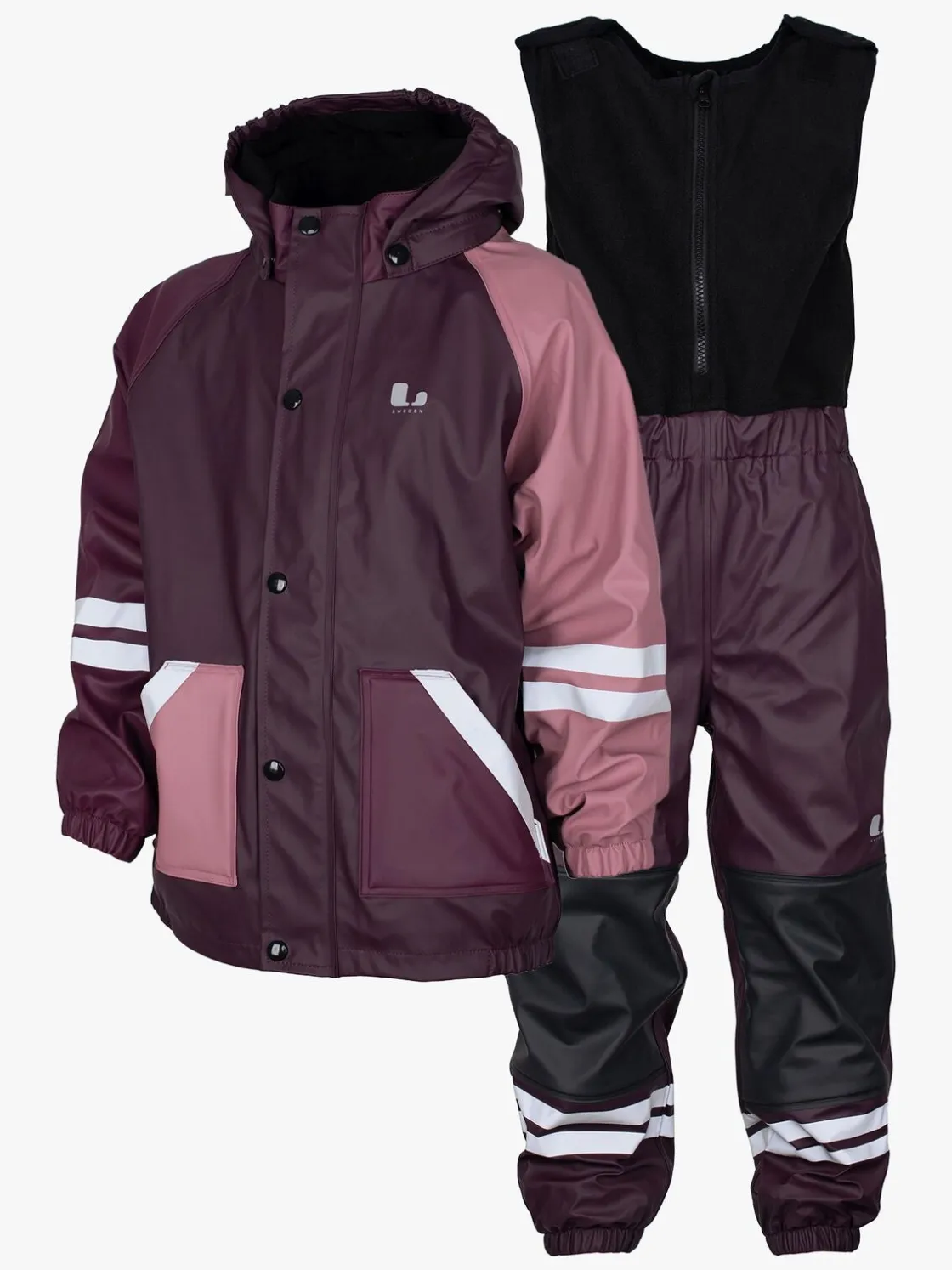 – Bukserne har en overdel i fleece, der dækker både bryst og ryg, og lukkes med velcrobånd ved skuldrene.