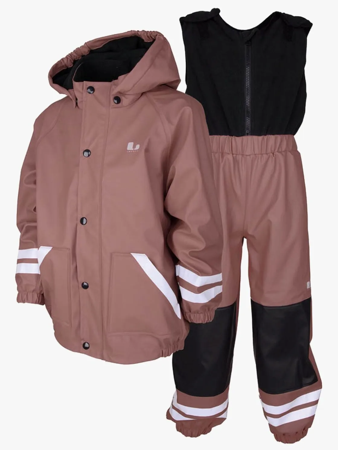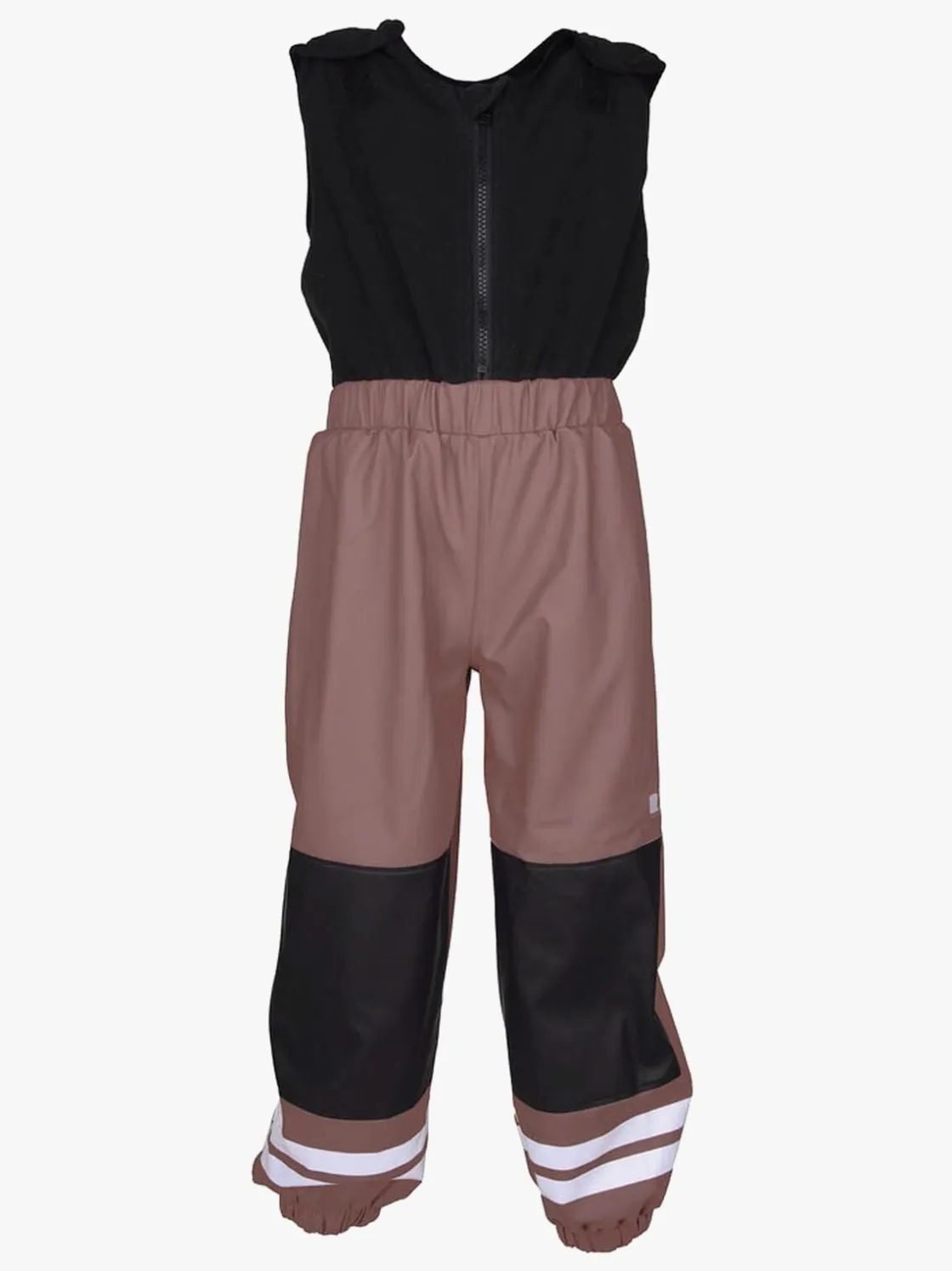 – Bukserne har en overdel i fleece, der dækker både bryst og ryg, og lukkes med velcrobånd ved skuldrene.