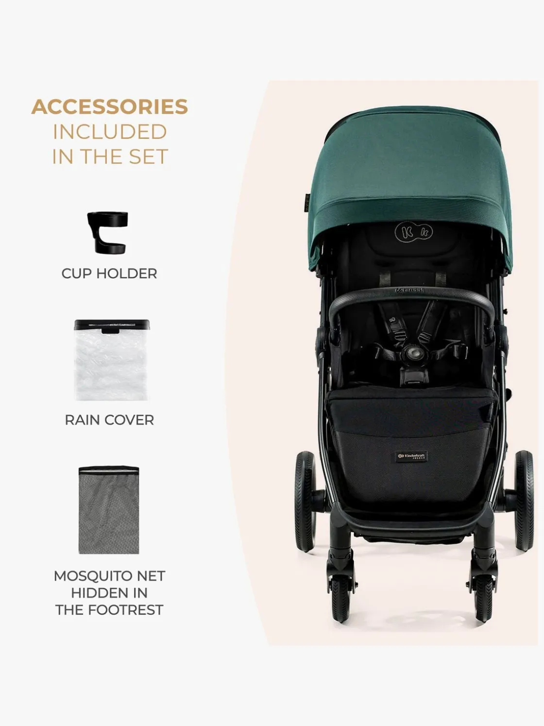 – Inkluderer: regnslag, myggenet, kopholder.