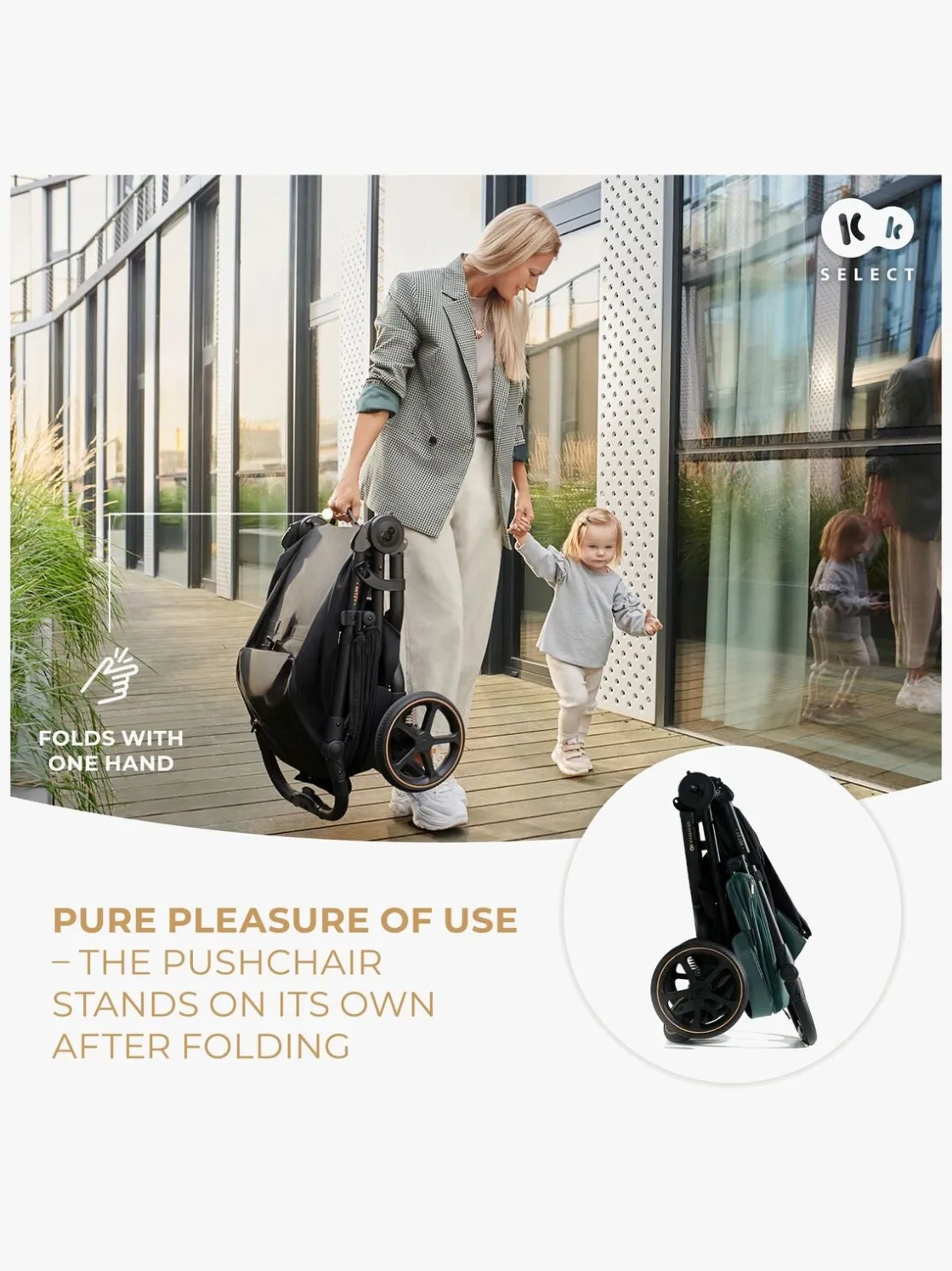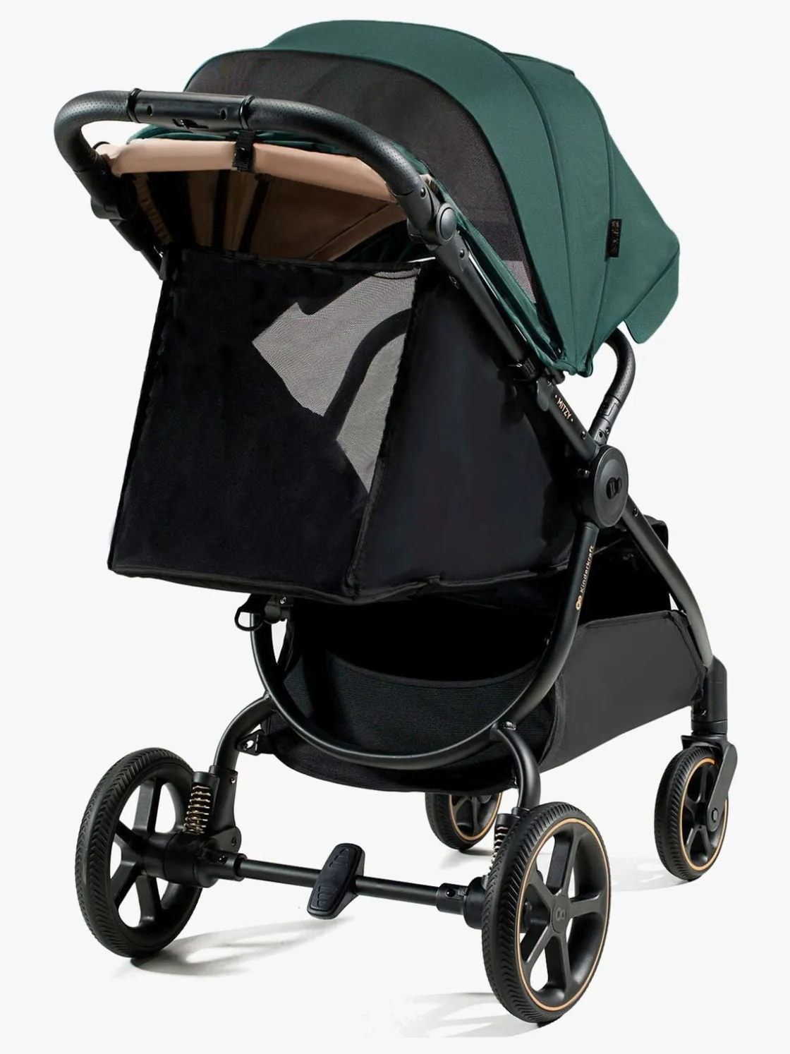 – Stor kaleche med vandtæt belægning og UPF50+.