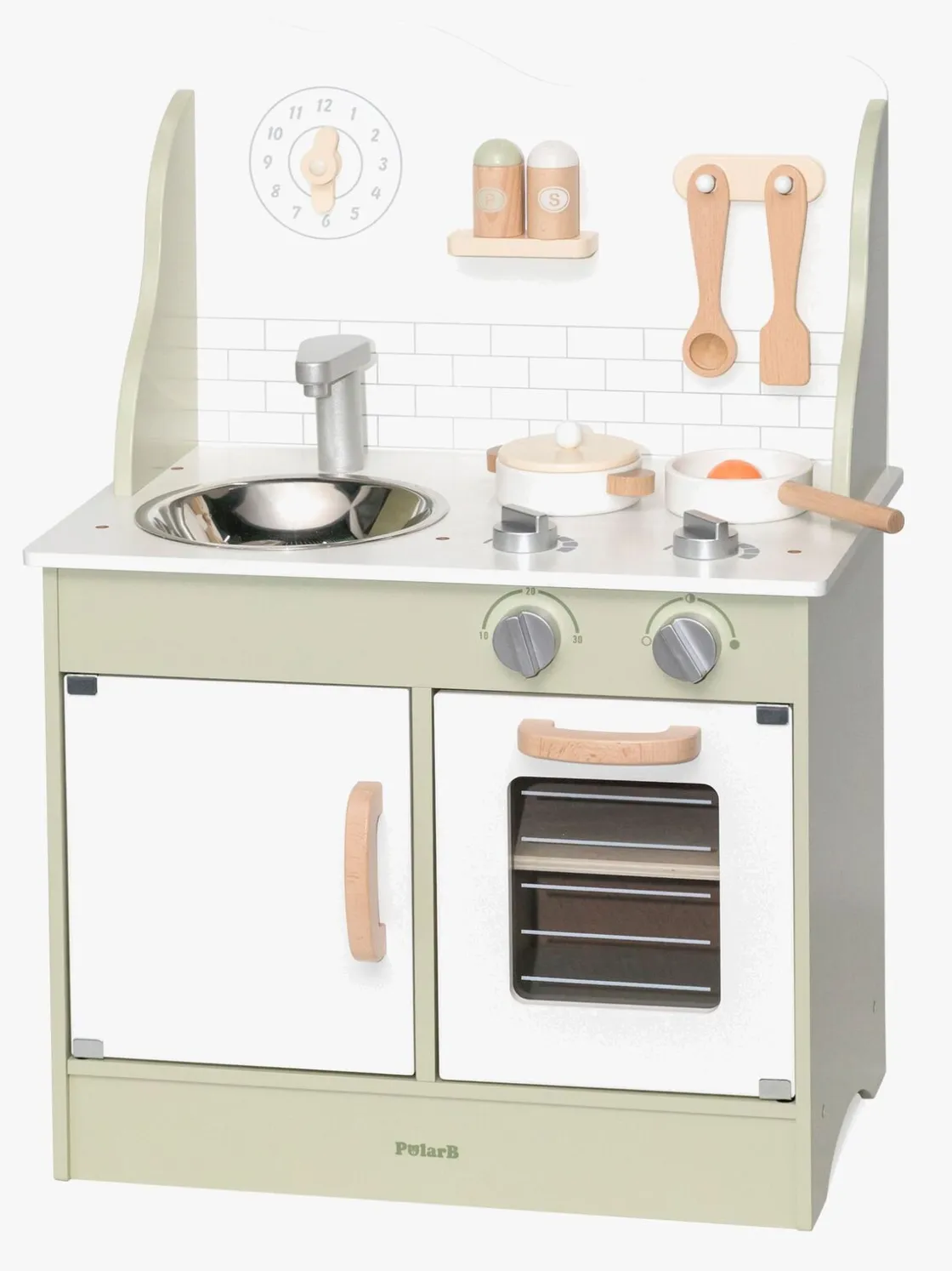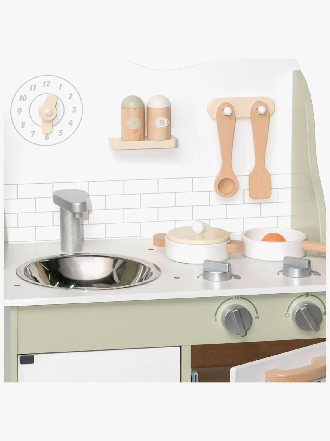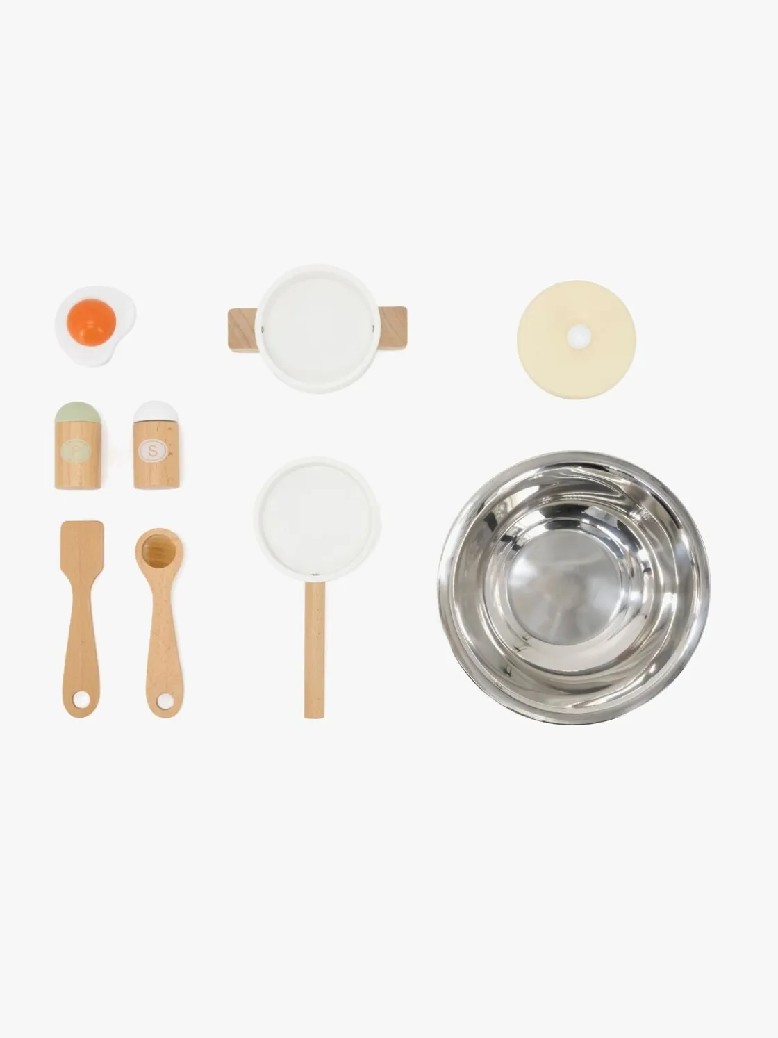 – Indeholder: 1 legekøkken, 1 stegepande, 1 gryde med et låg, 1 paletkniv, 1 grydeske, 1 salt- og pebersæt, 1 spejlæg.