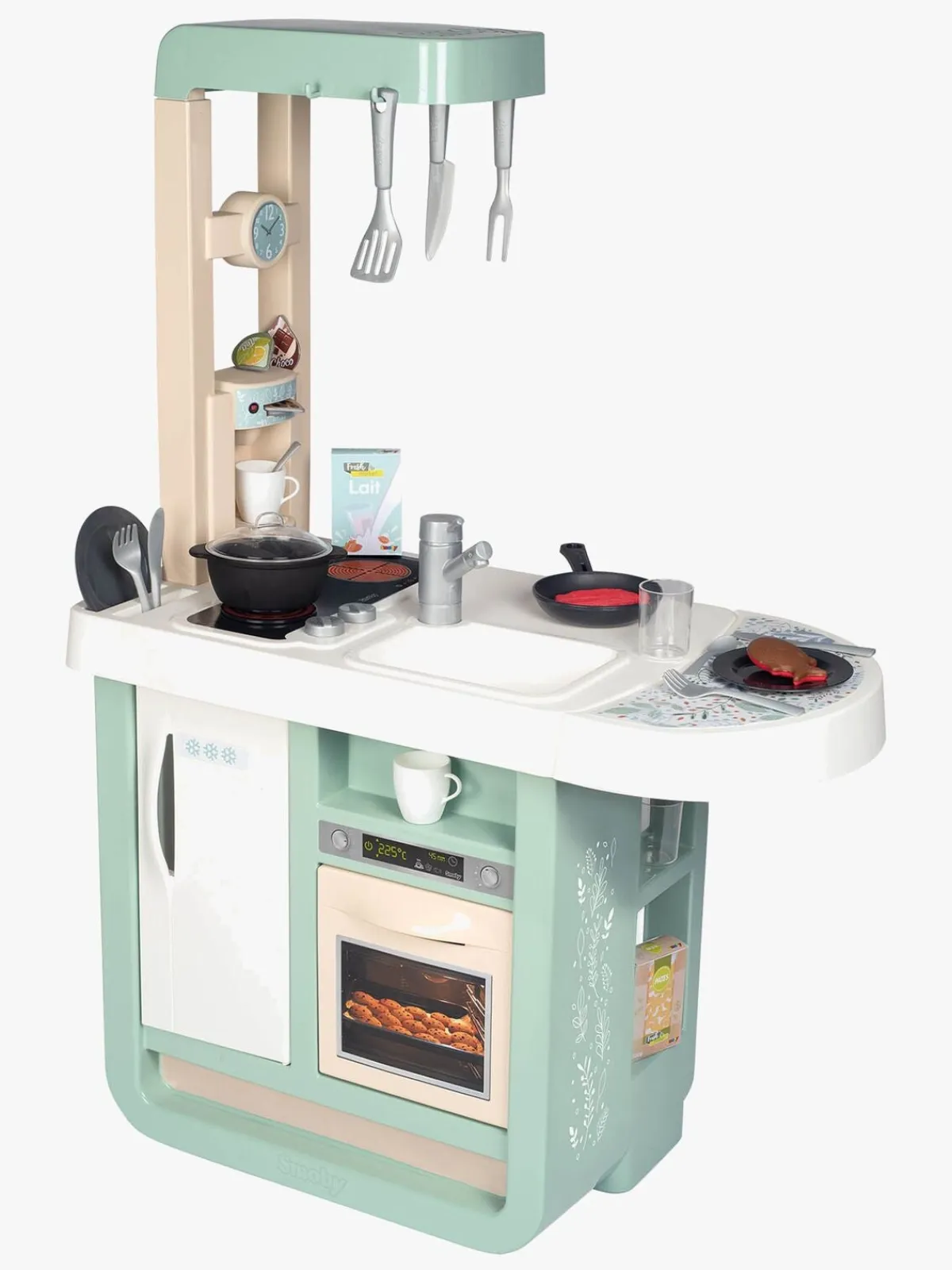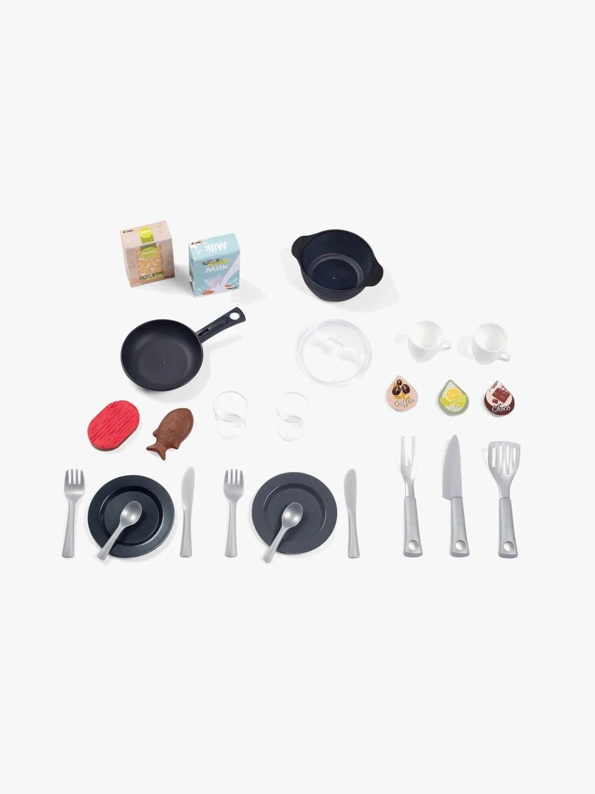 – Indeholder: 9 forskelligt bestik, 2 glas, 2 tallerkener, 2 kaffekopper, 1 espressomaskine, 3 kaffekapsler, 1 stegepande, 1 gryde.