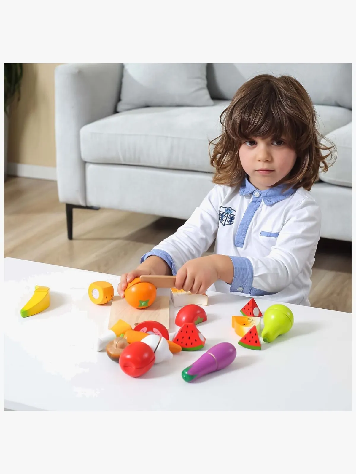 – Indeholder: 1 skærebræt, 1 kniv, 11 madvarer.