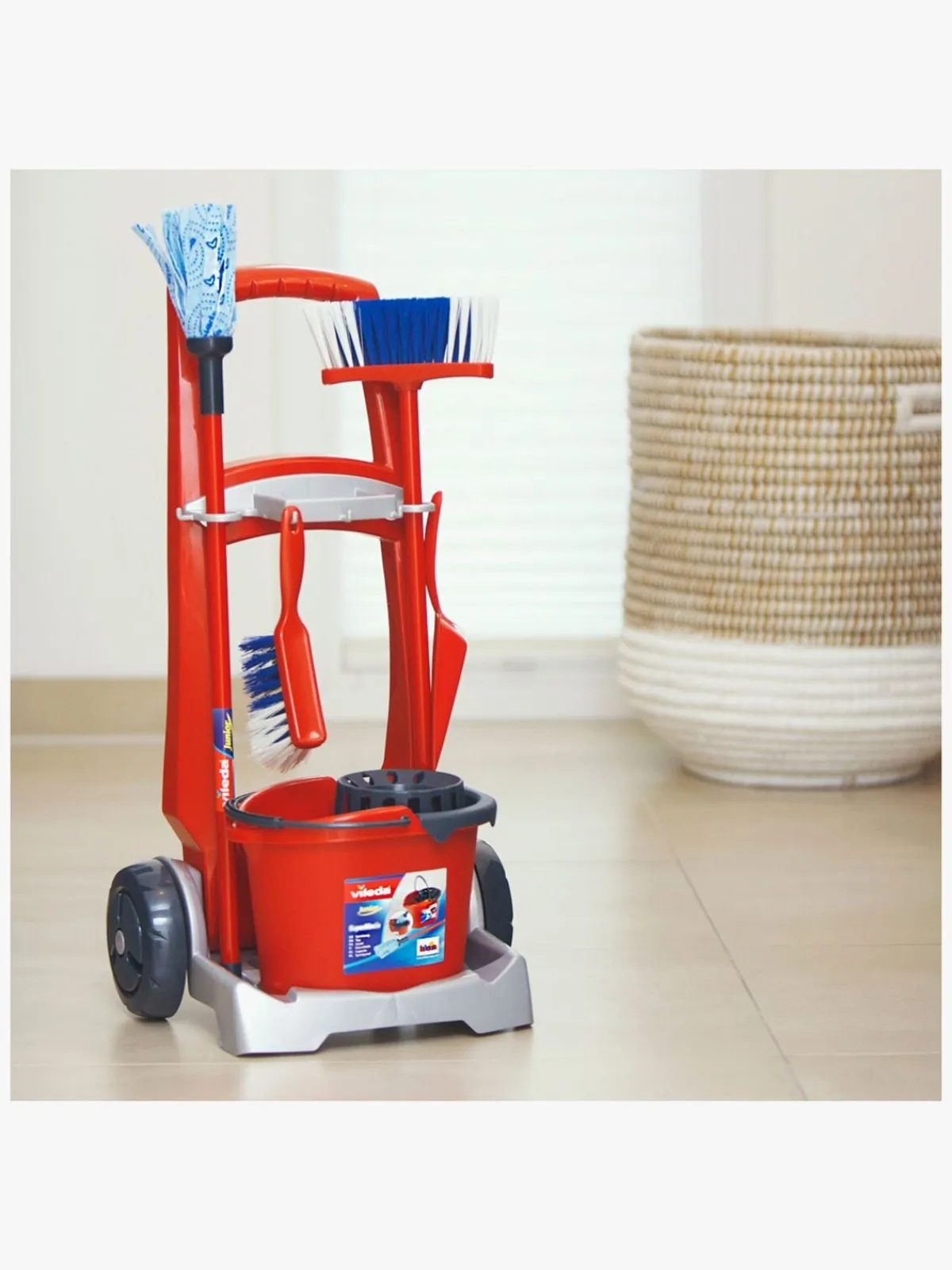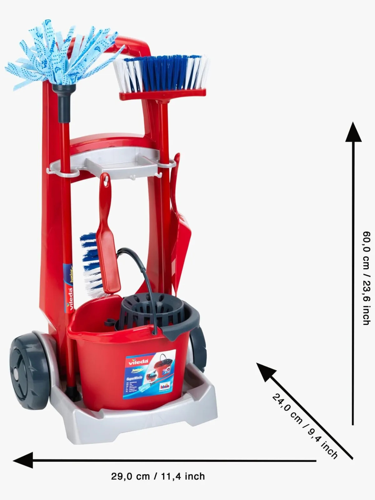 – Indeholder: 1 vogn, 1 spand, 1 moppe, 2 koste, 1 fejebakke.
