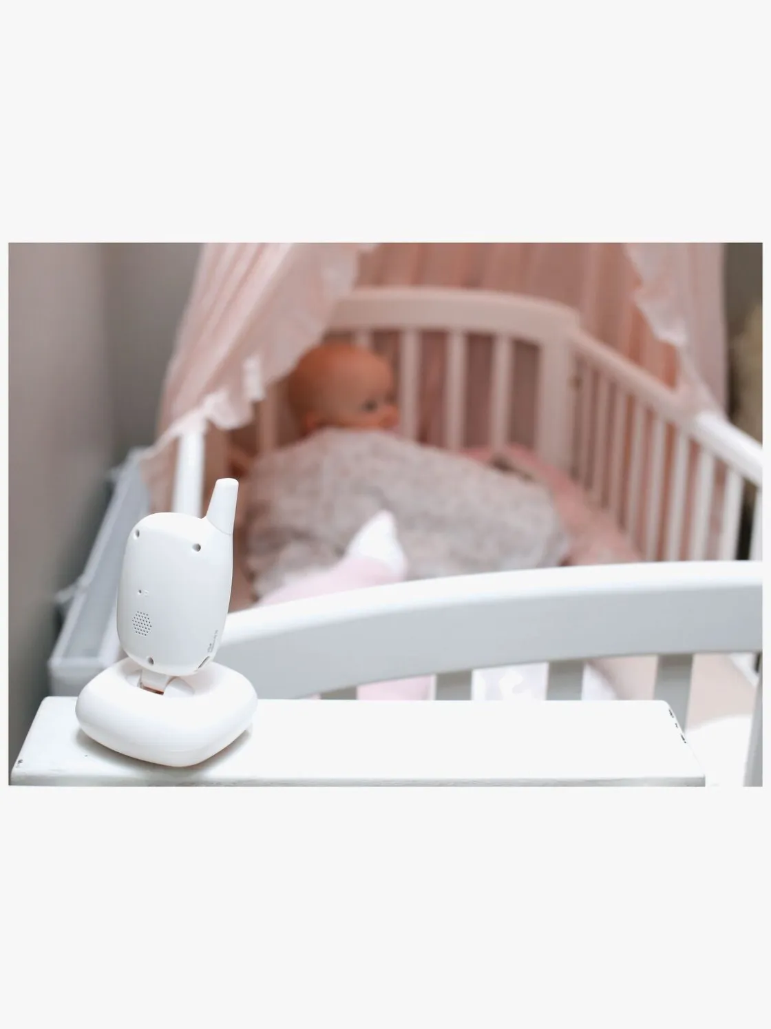 Denne model har et opladeligt batteri, så du kan tage den med på farten, i haven eller på balkonen. Babyalarmen kan derfor bruges trådløst og behøver ikke strømforsyning med kabel.