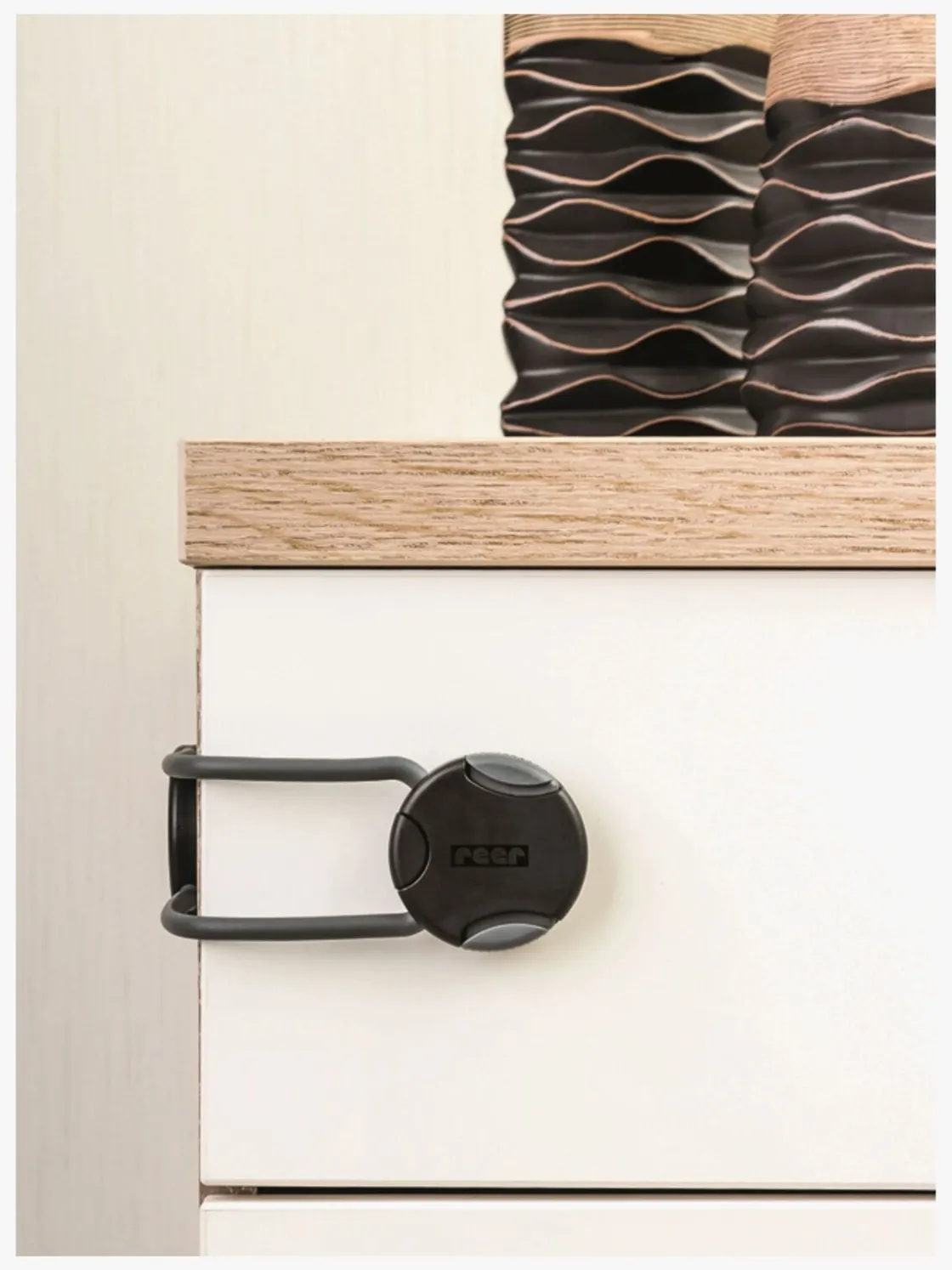 – Alsidig lås til skabe, skuffer og apparater som opvaskemaskine og køleskab/fryser.