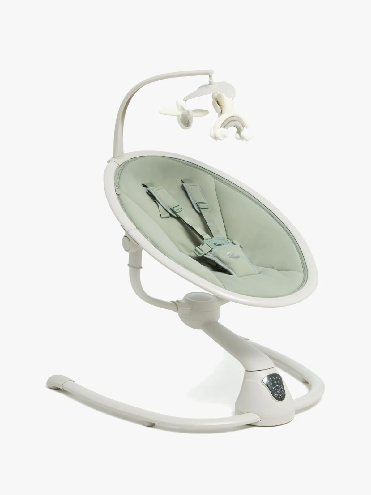 – Fjernkontrol medfølger til justering af gynge- og musikfunktion.
