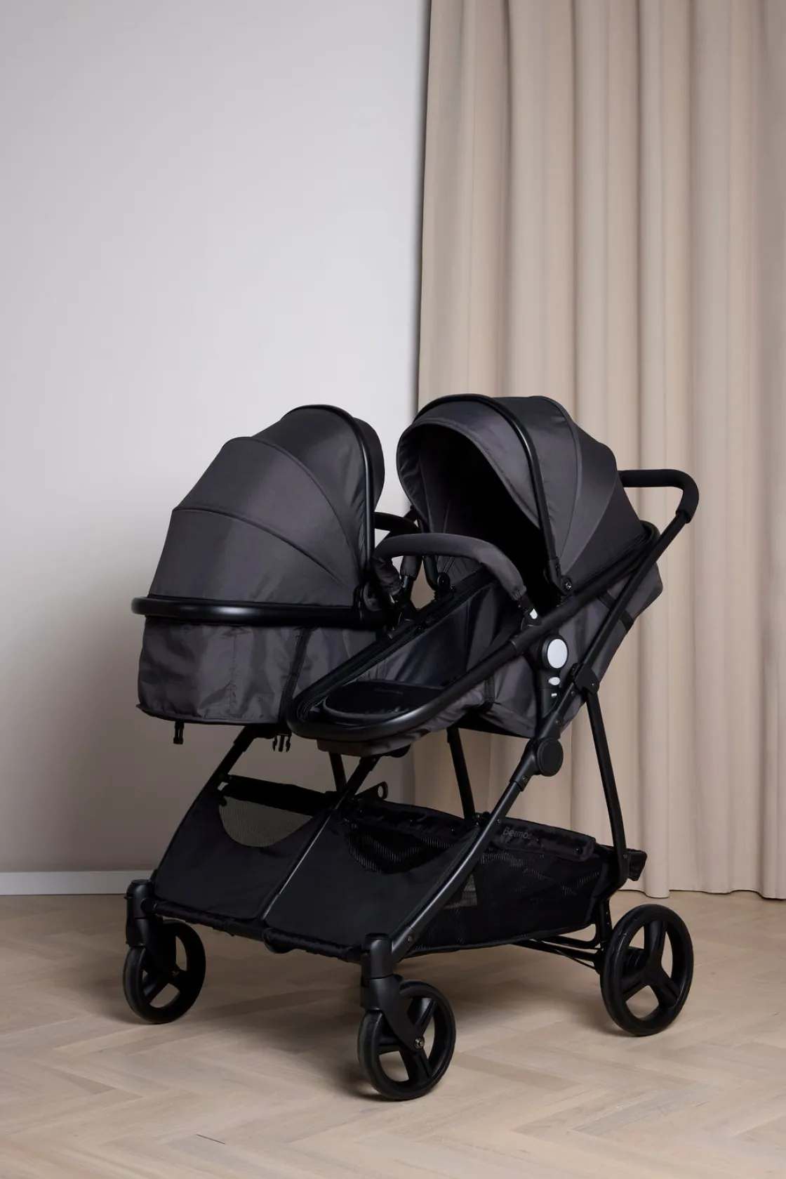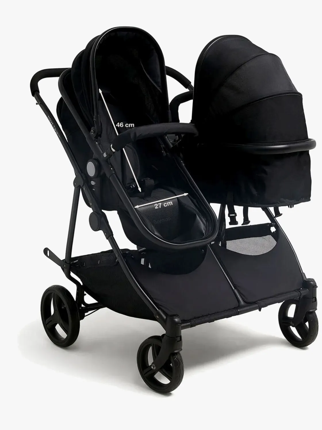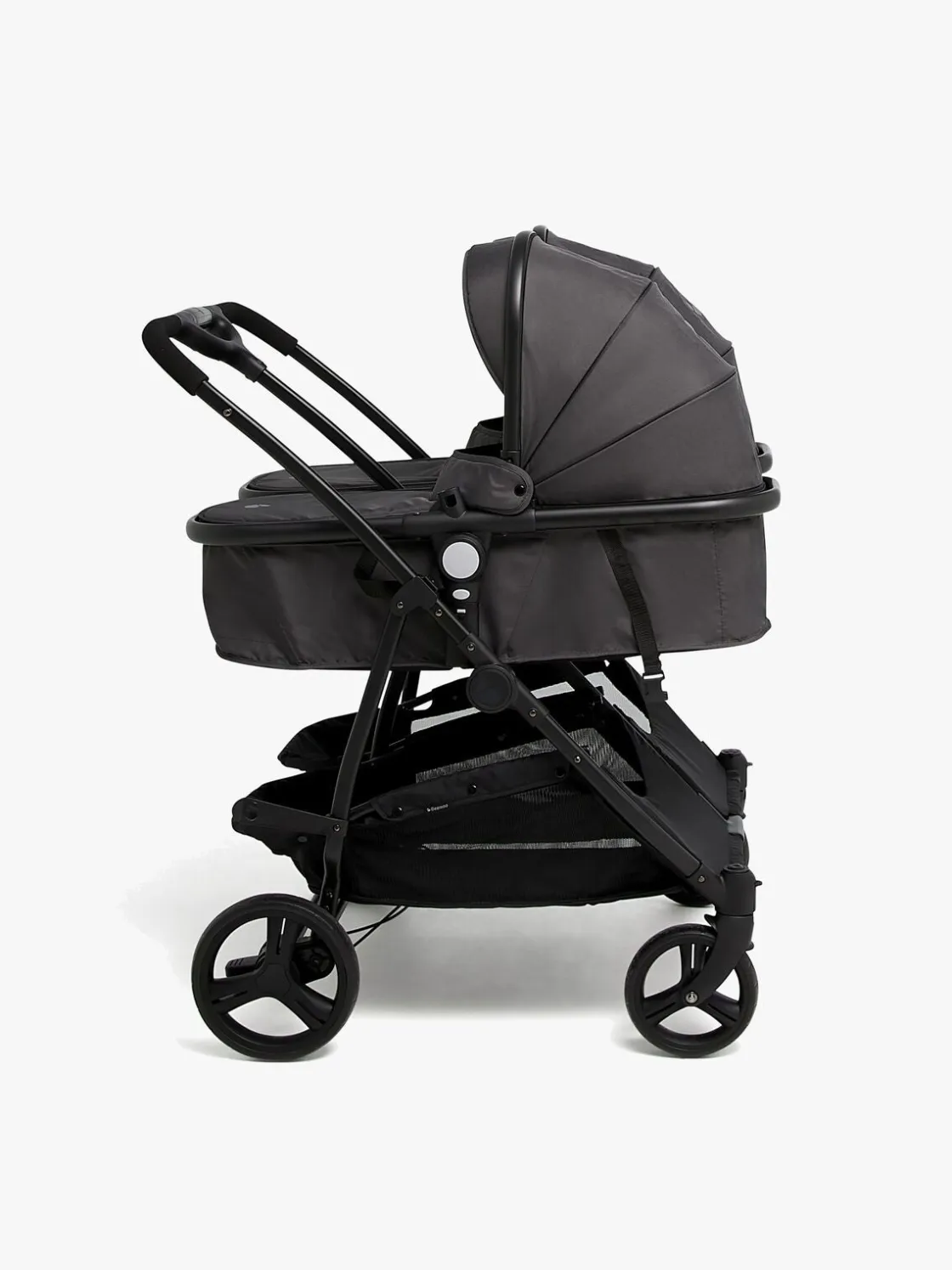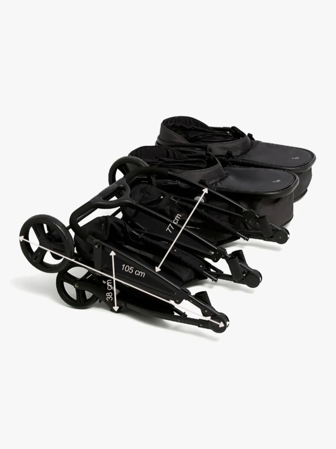 – ADVARSEL! Frontbøjlen, der følger med vognen, må ALDRIG bruges sammen med liggedelen. Bær ALDRIG liggedelen eller sædet i bøjlen.