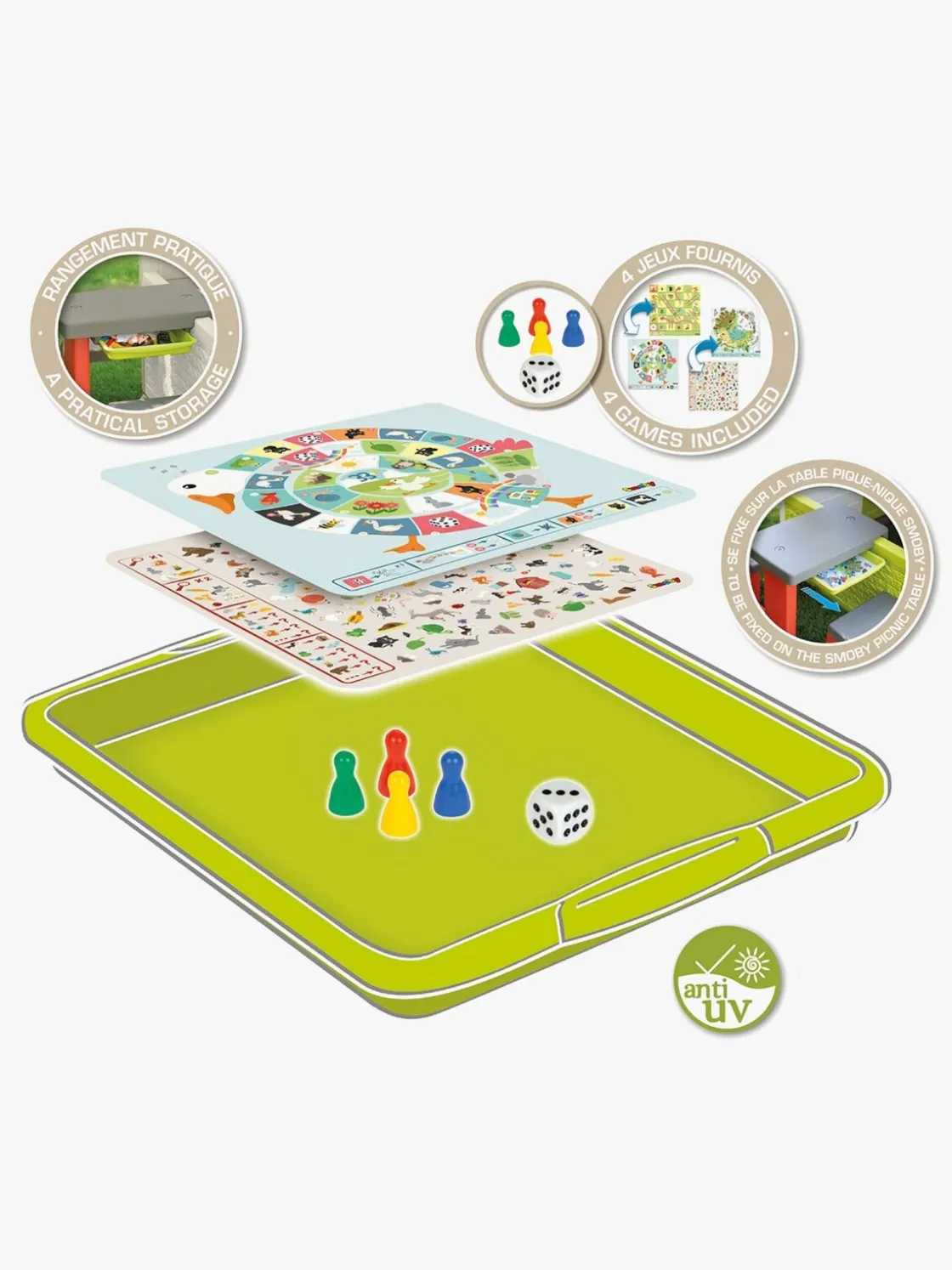 – Fastgøres på Smoby Neo Jura picnicbord (sælges separat).