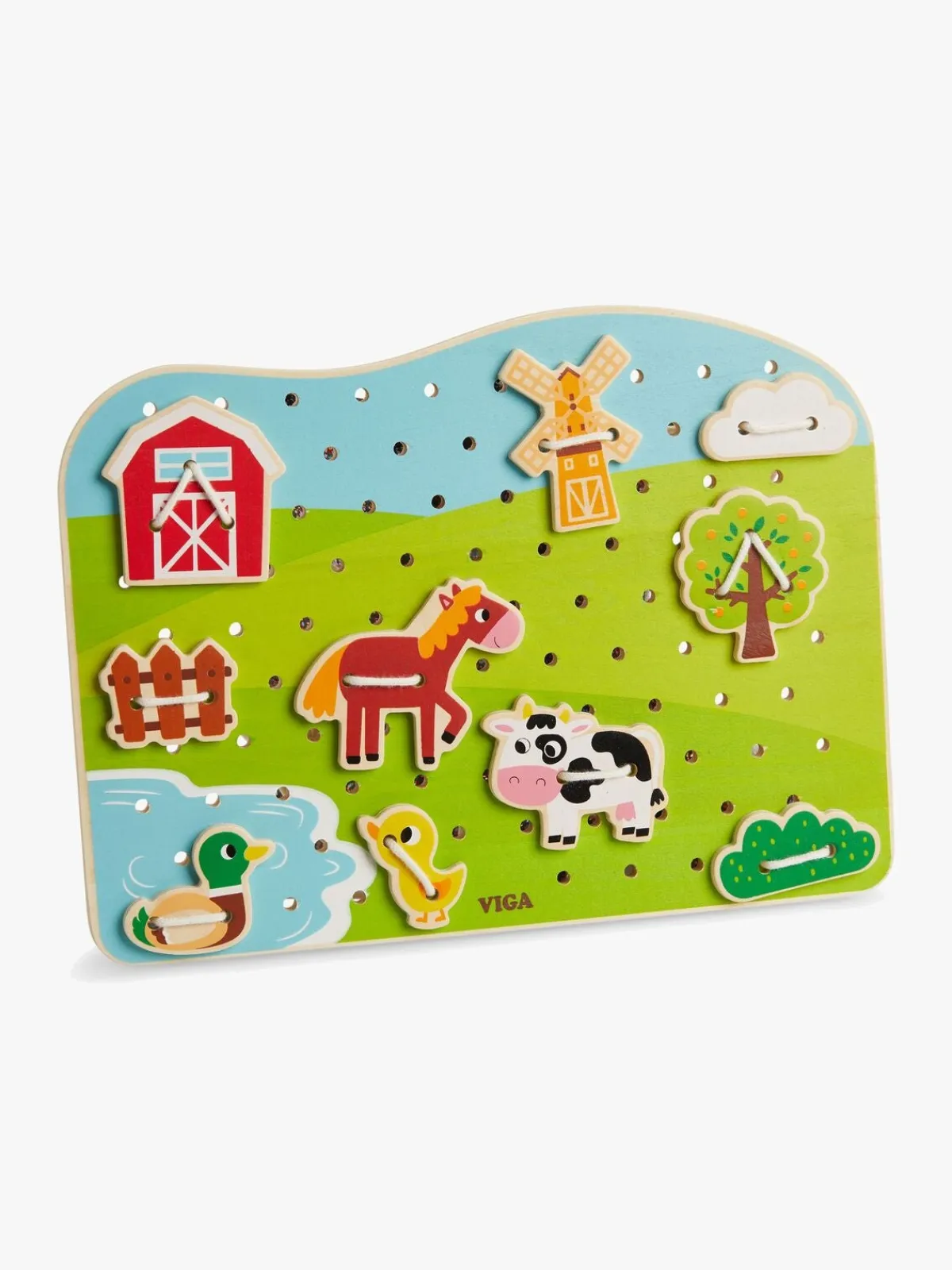 – Placér figurene på brættet og sæt dem fast med snoren.