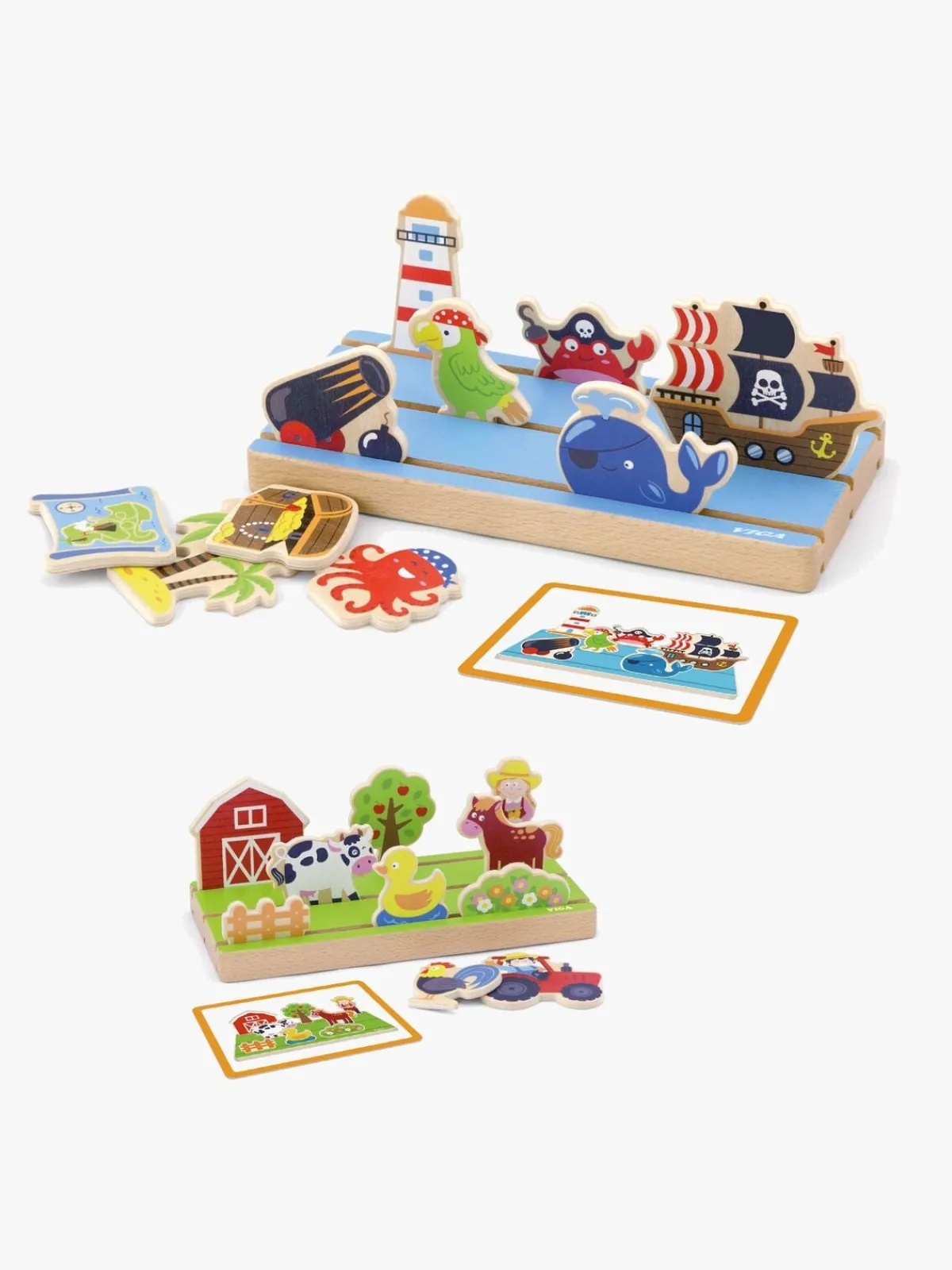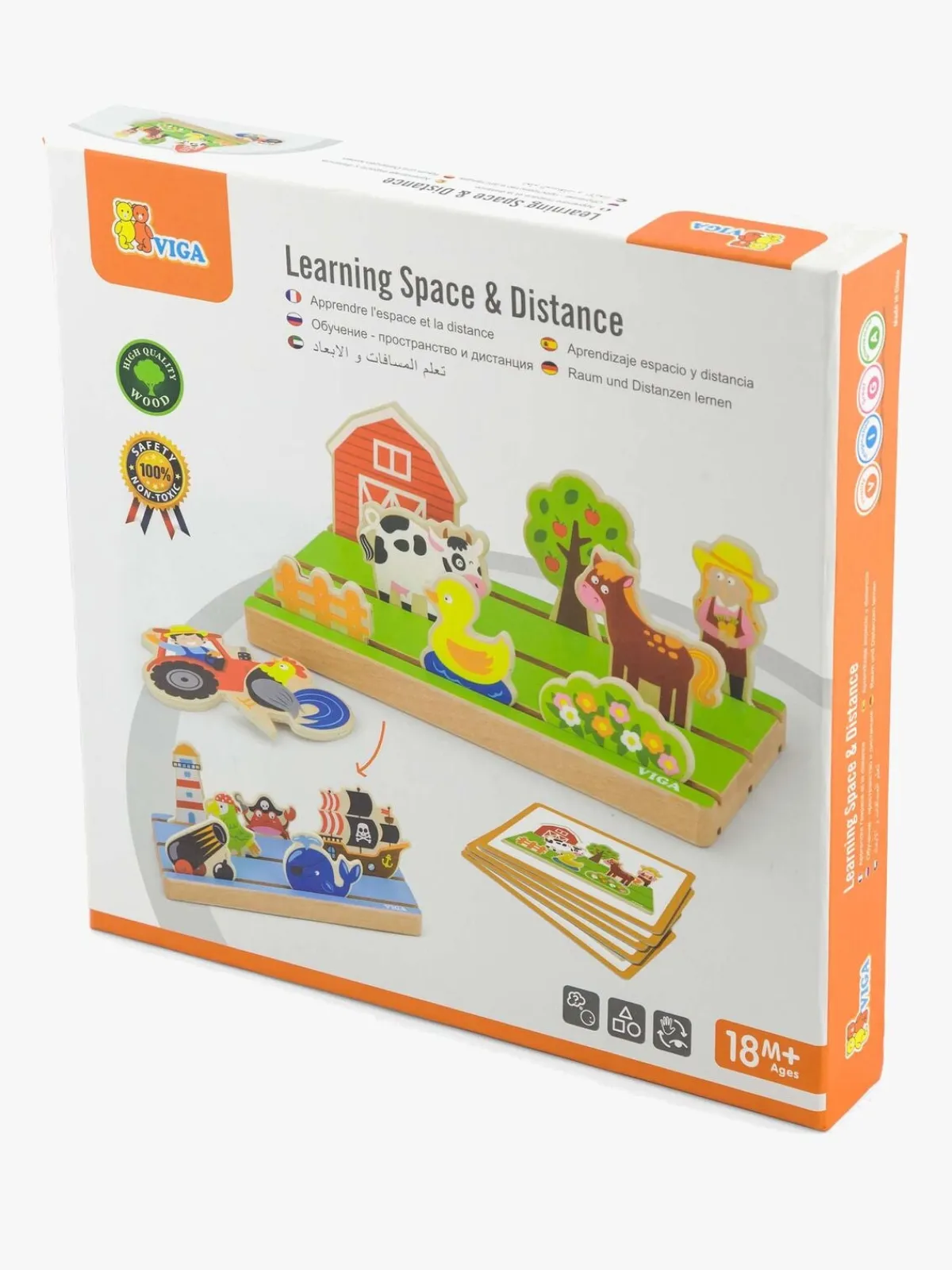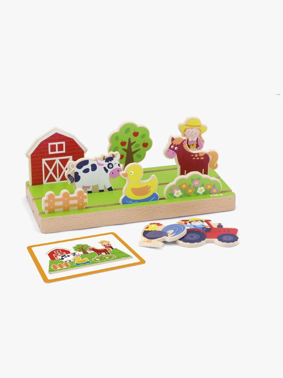 Figurerne placeres i træunderlaget, og så kan dit barn finde ud af, hvordan disse figurer forholder sig til hinanden.