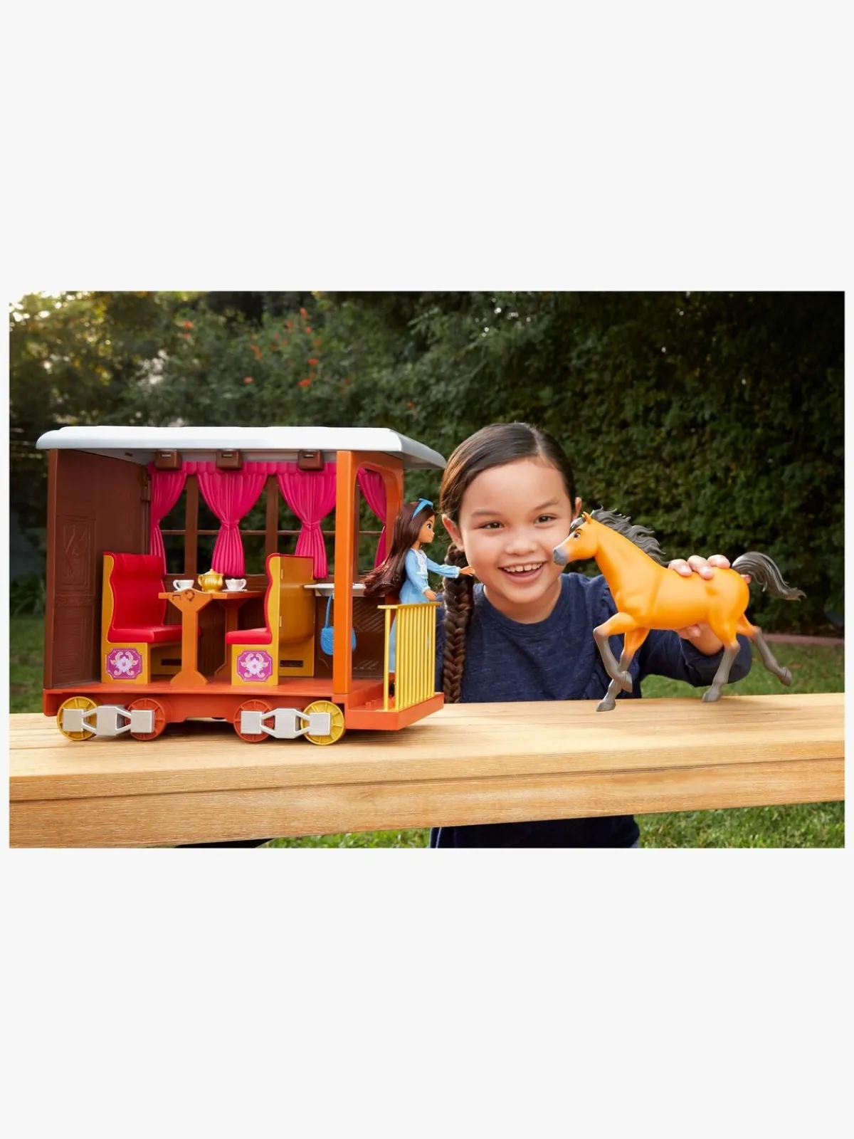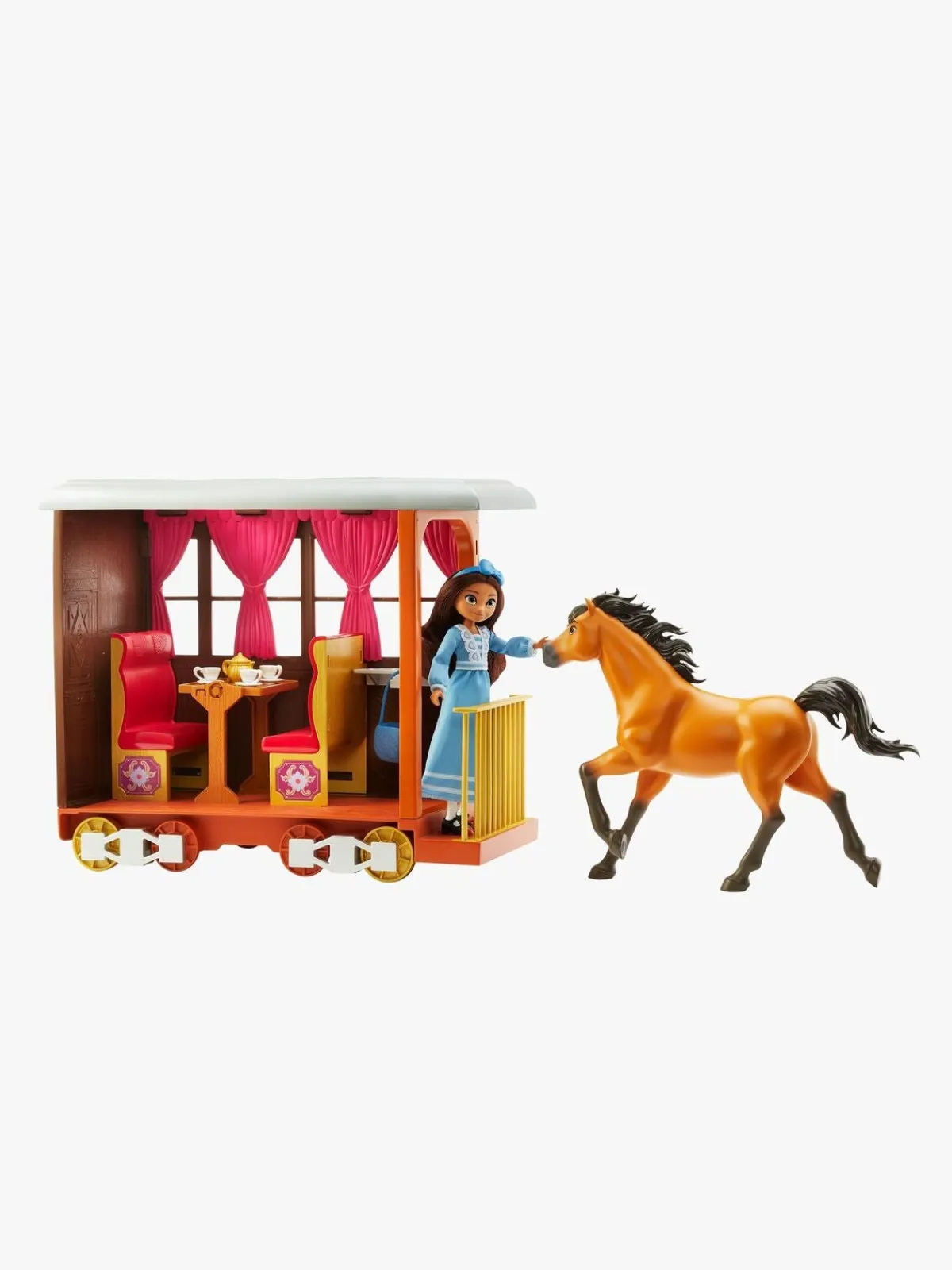 Et sjovt legetøjssæt fra Spirit, der består af dukken, Lucky, hendes søde hest, Spirit, og en smuk togvogn fra Spirit. Følg med Lucky på hendes lange rejse hjem. Perfekt til alle, der er fan af Spirit!