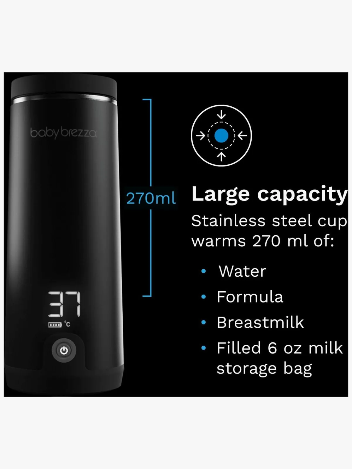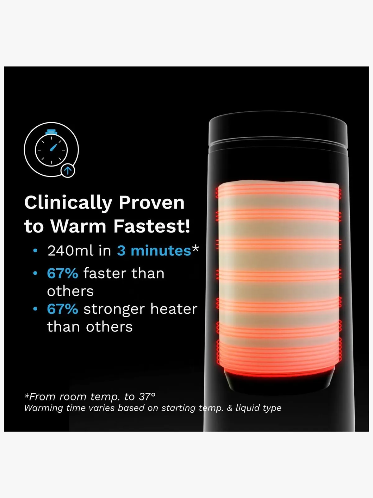 – Opvarmer 240 ml på kun 3 minutter (fra stuetemperatur til 37 °C).