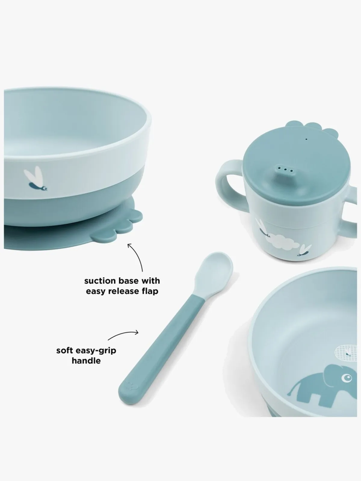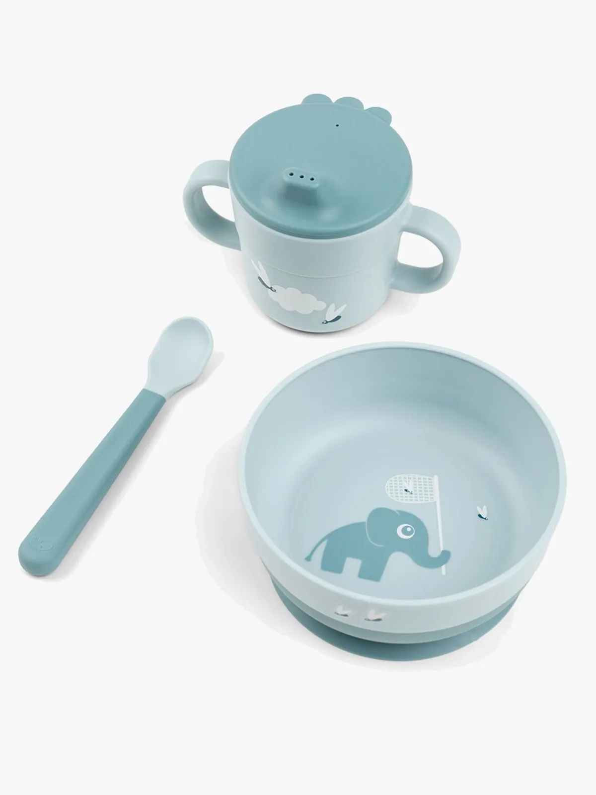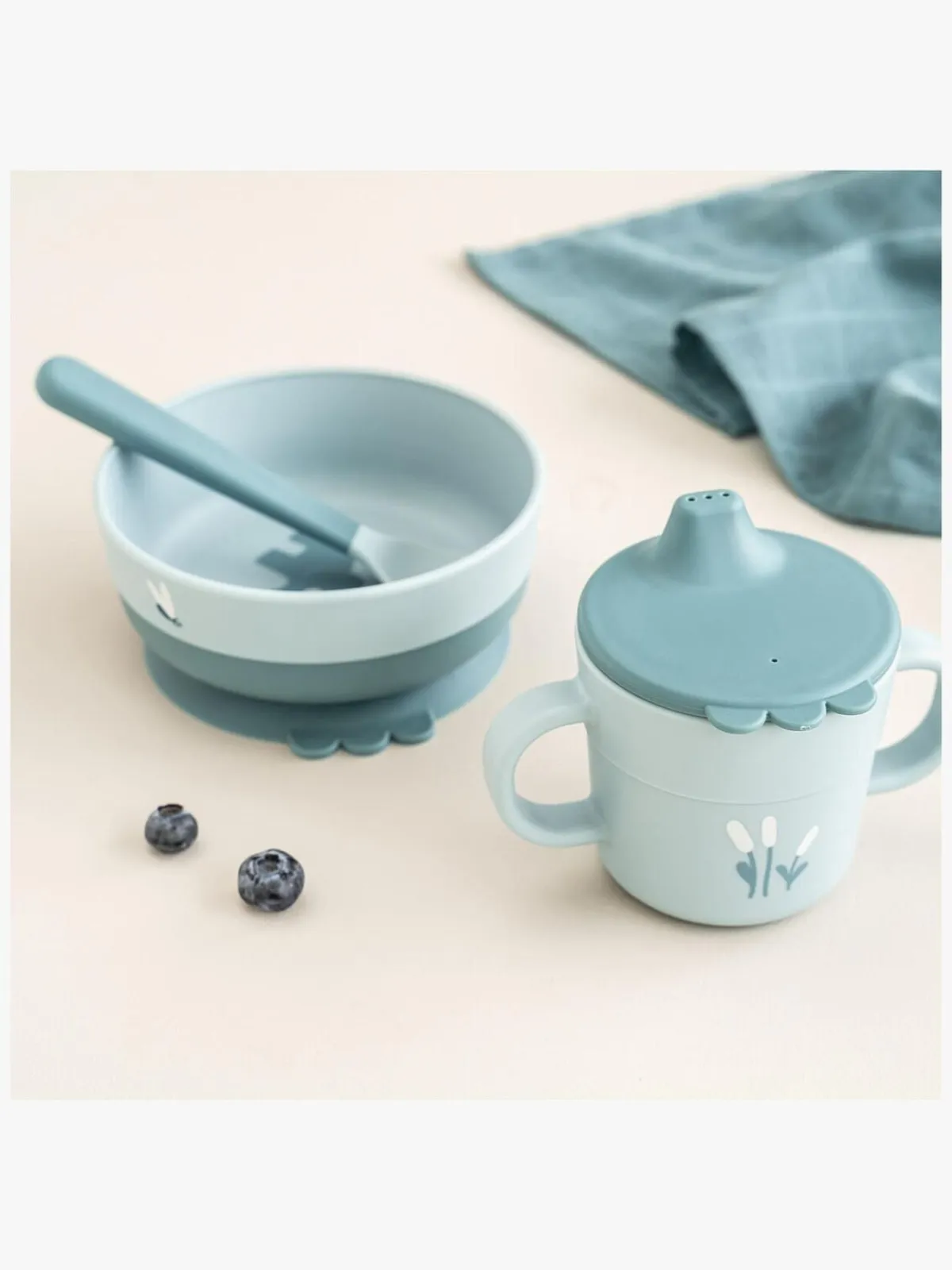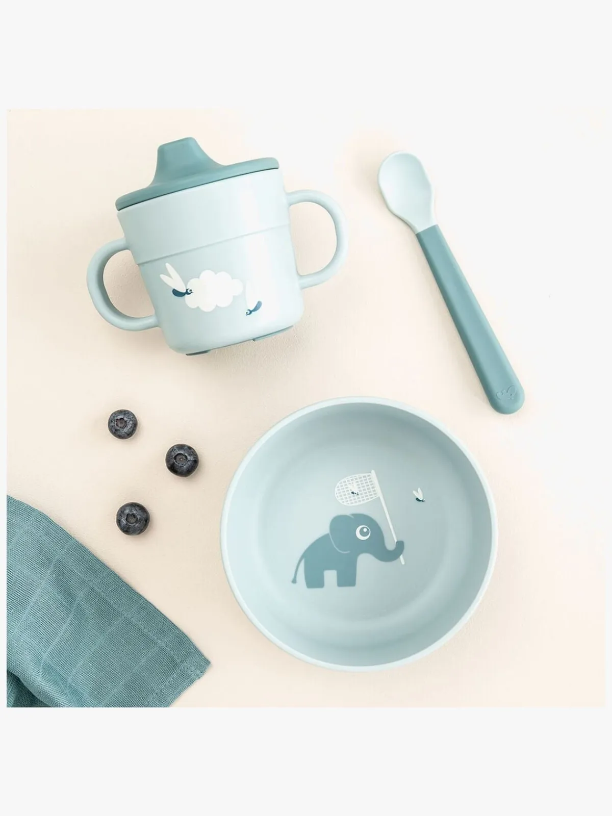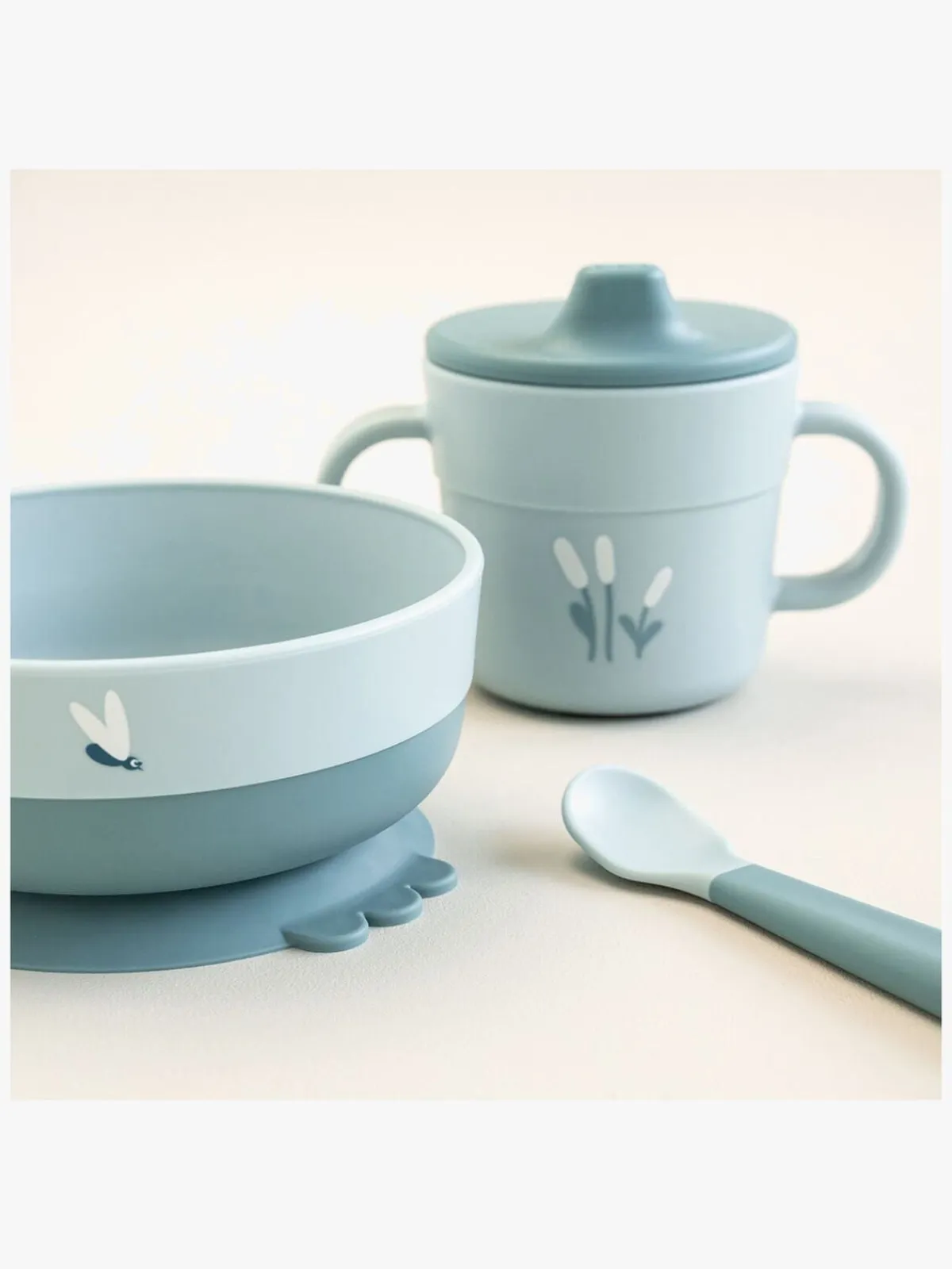 – Sættet indeholder en skål, en ske og en tudekop.