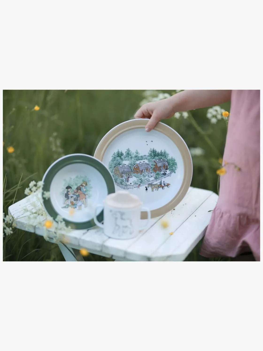 – Indeholder en dyb tallerken og en flad tallerken, begge med en silikonering på undersiden til at forhindre, at de glider.