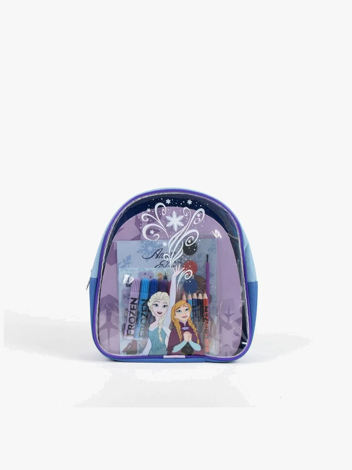 – Indeholder: 5 farveblyanter, 5 tusser, 6 vandfarver, 1 pensel, 1 malebog, 2 klistermærkeark, 1 rygsæk.