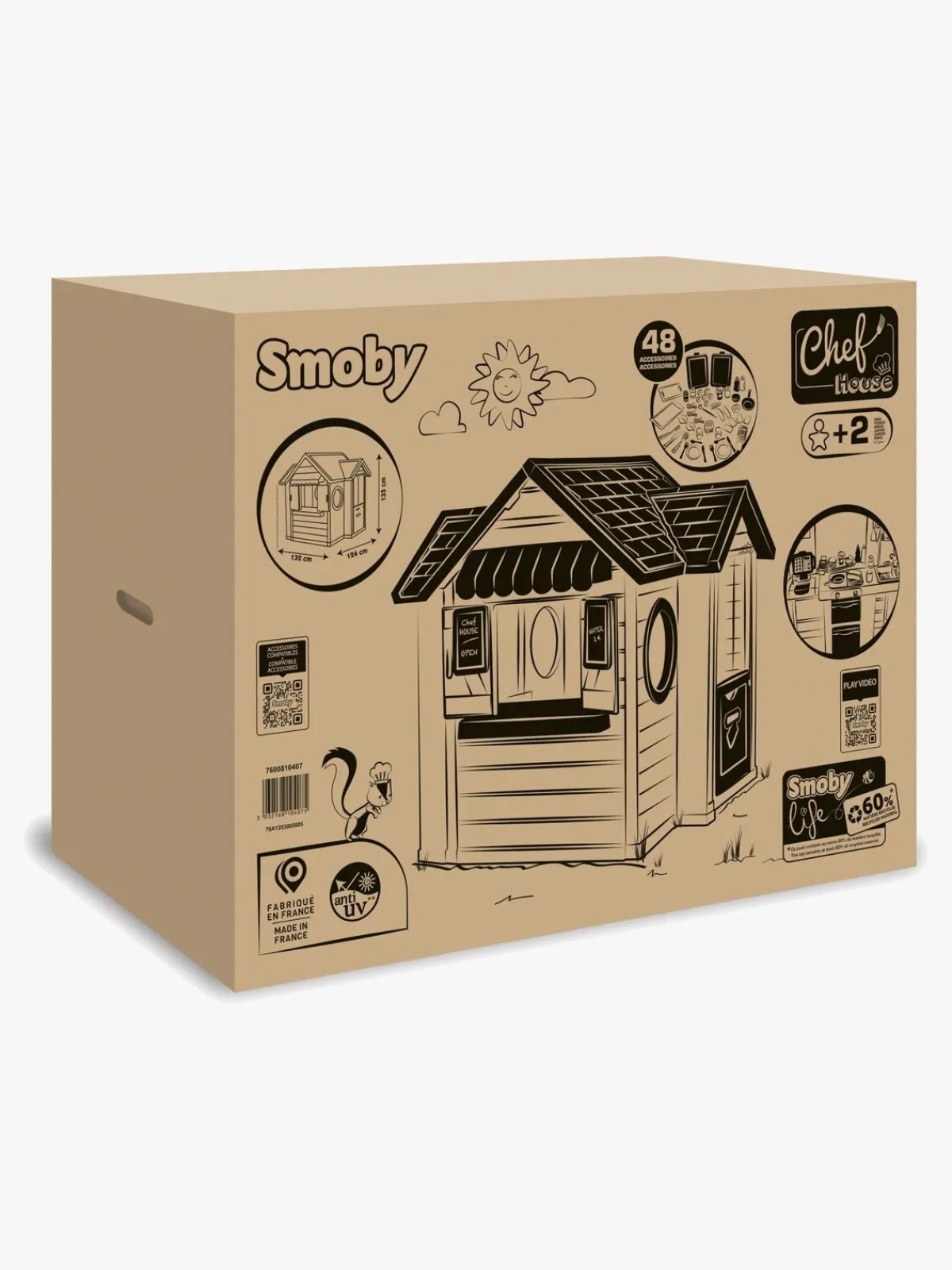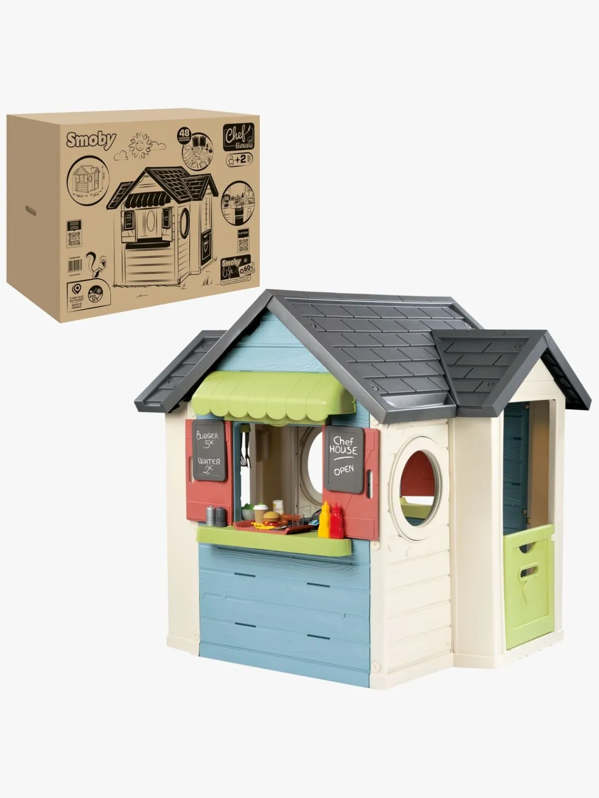 – Indeholder: 1 legehus, 2 hylder, 1 tallerken, 44 tilbehør.