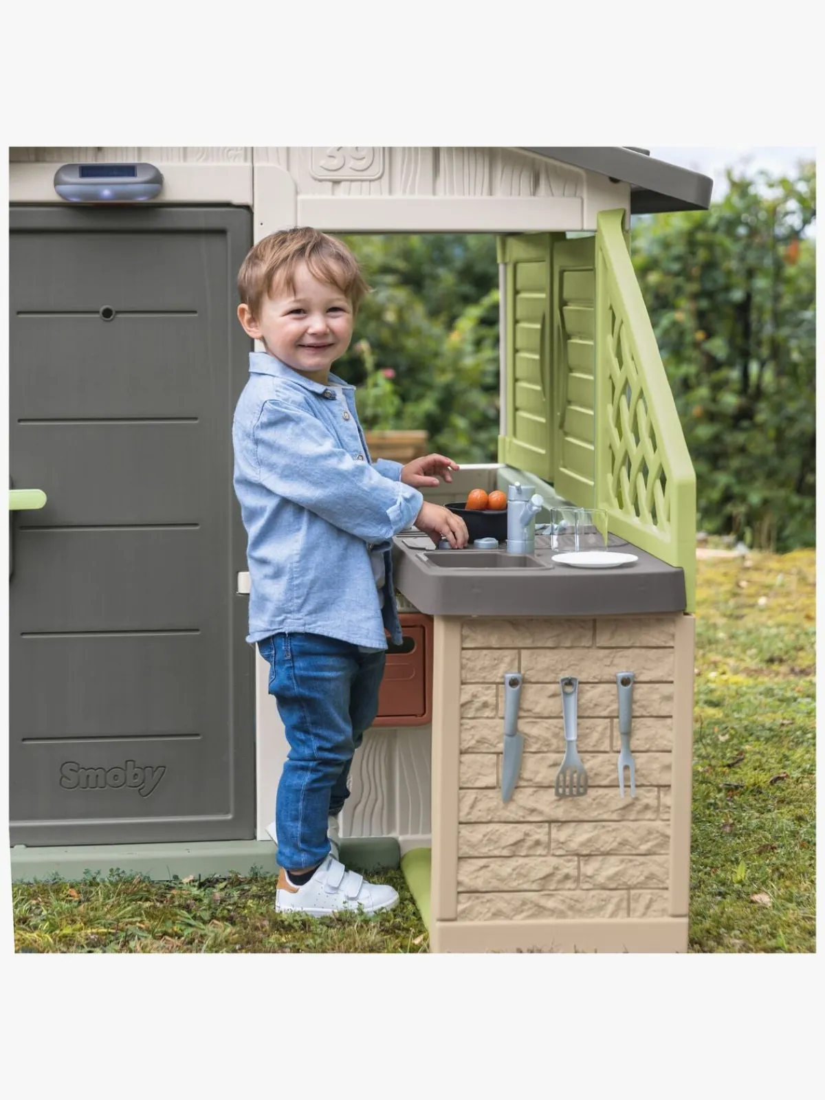 – Legekøkkenet har en grill og en vask med vandhane.