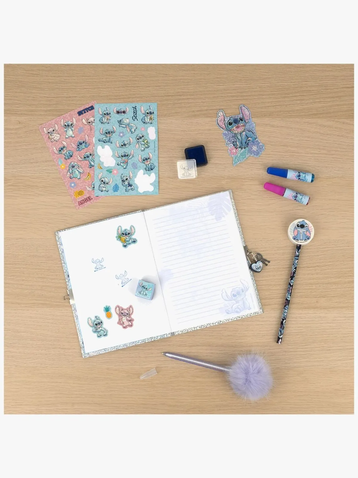 – Indeholder: 1 dagbog, 1 hængelås, 2 tusser, 1 klistermærkeark.