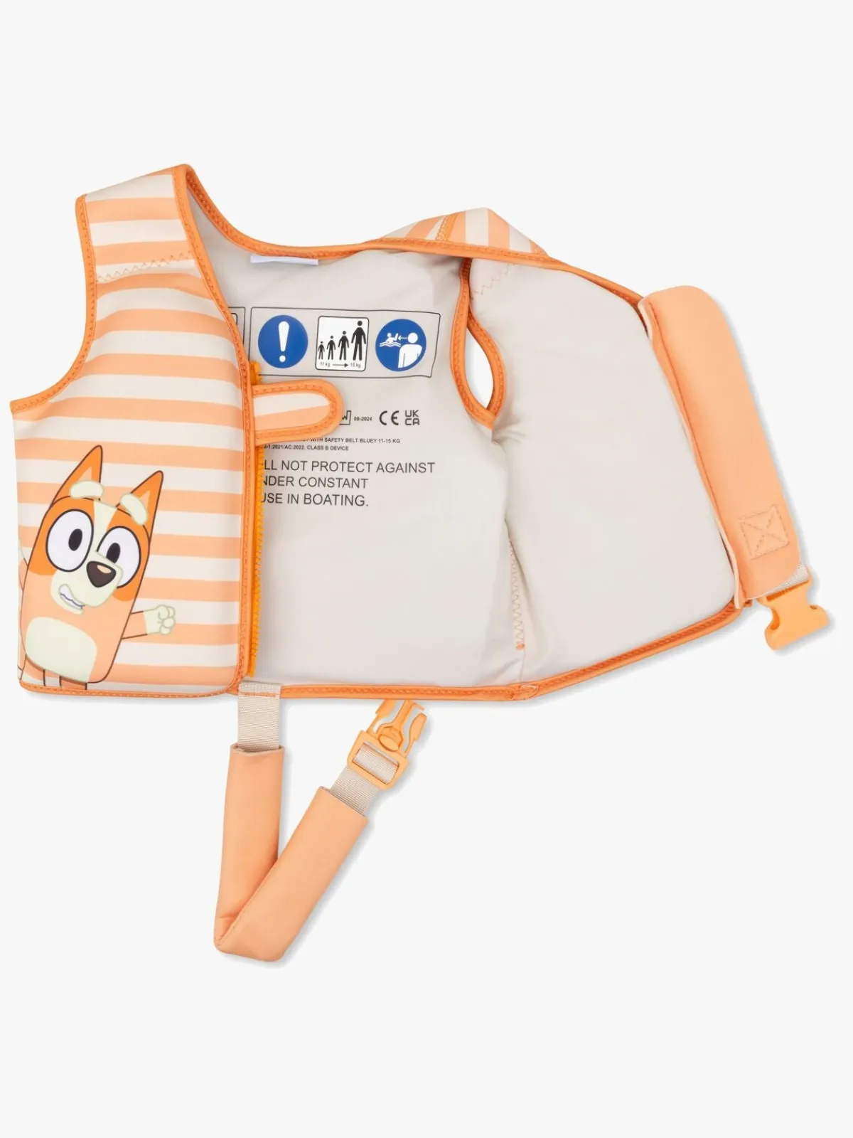 – OBS: Svømmeveste er primært beregnet til svømning og svømmetræning og kan sammenlignes med oppustelige svømmevinger. De garanterer ikke beskyttelse mod drukning. Barnet skal derfor altid være under opsyn af en voksen, når barnet er i vand.