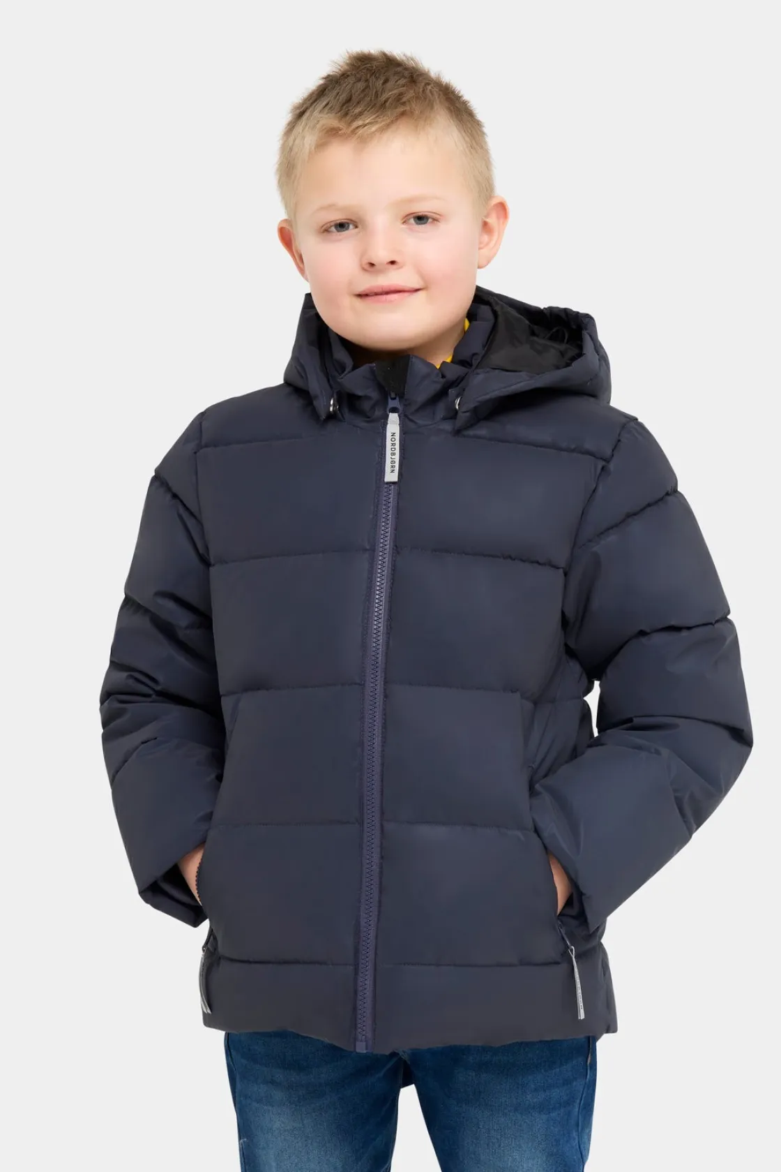 – Med hætte og lynlås.