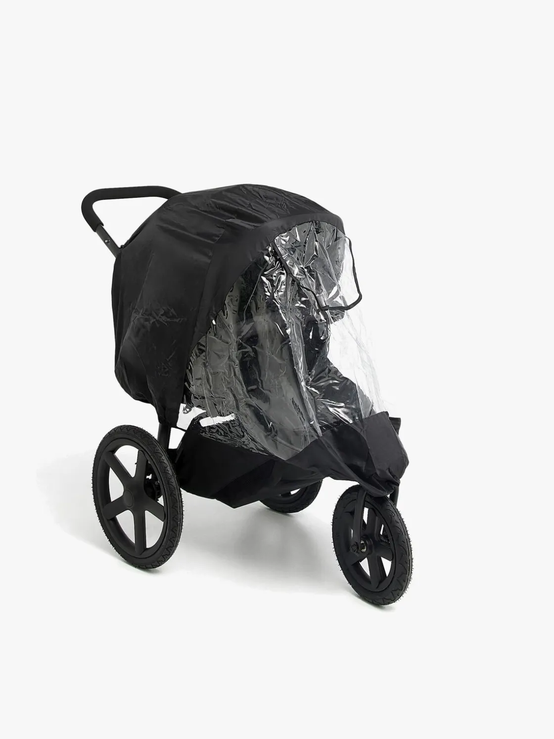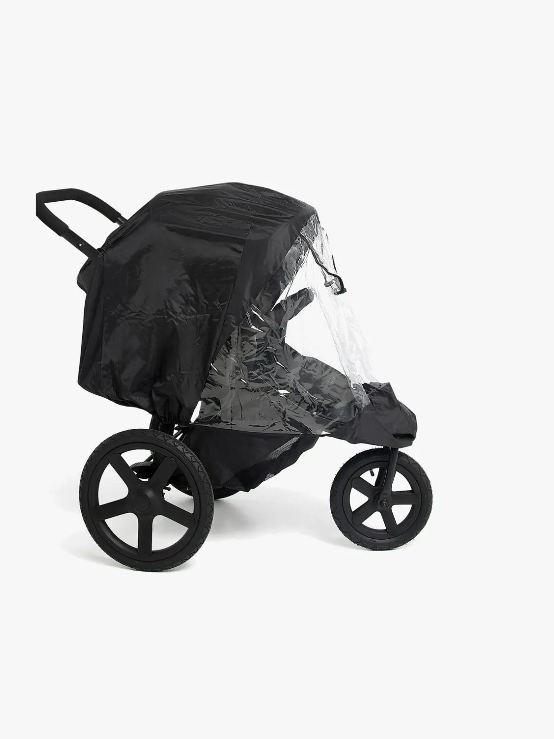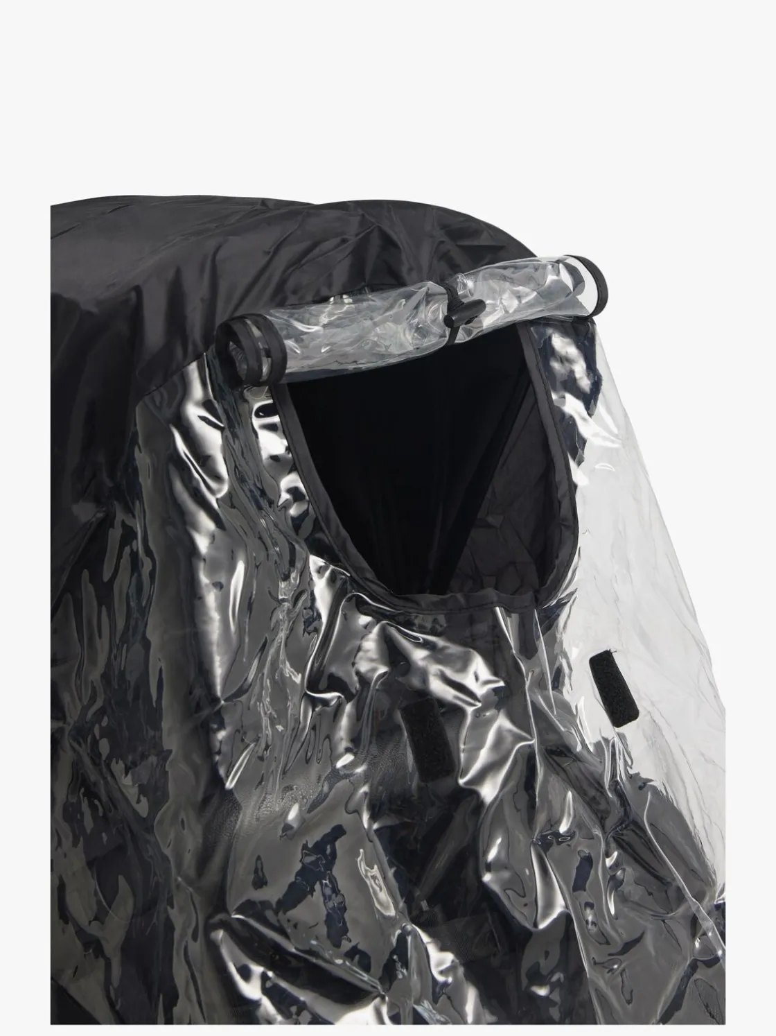 – Ved voldsomt blæsevejr, kan regnslaget monteres ved hjælp af både velcro og kroge, så det sidder ekstra godt fast på vognen.