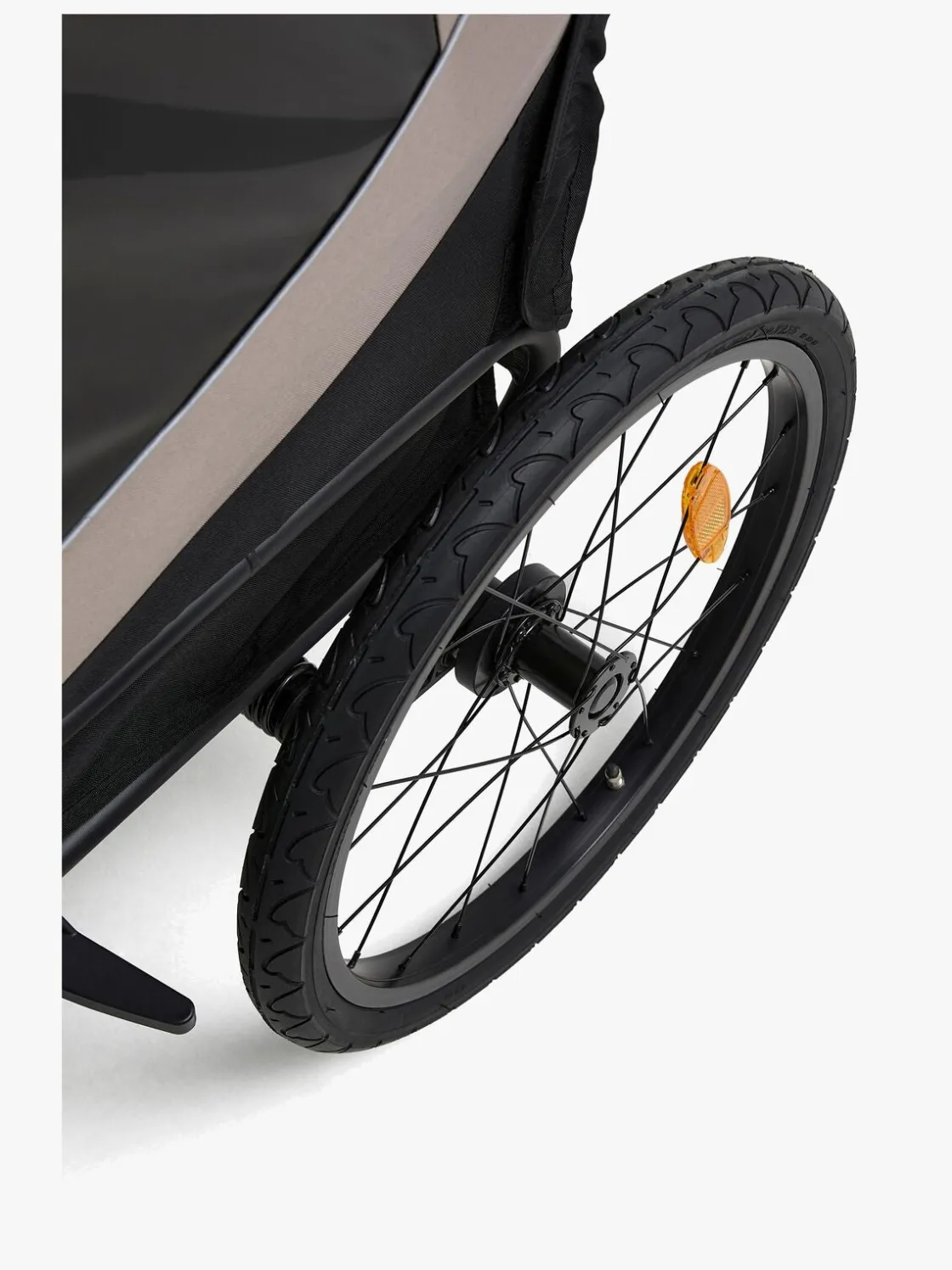 – Et svingbart forhjul medfølger, så vognen også kan bruges som klapvogn.