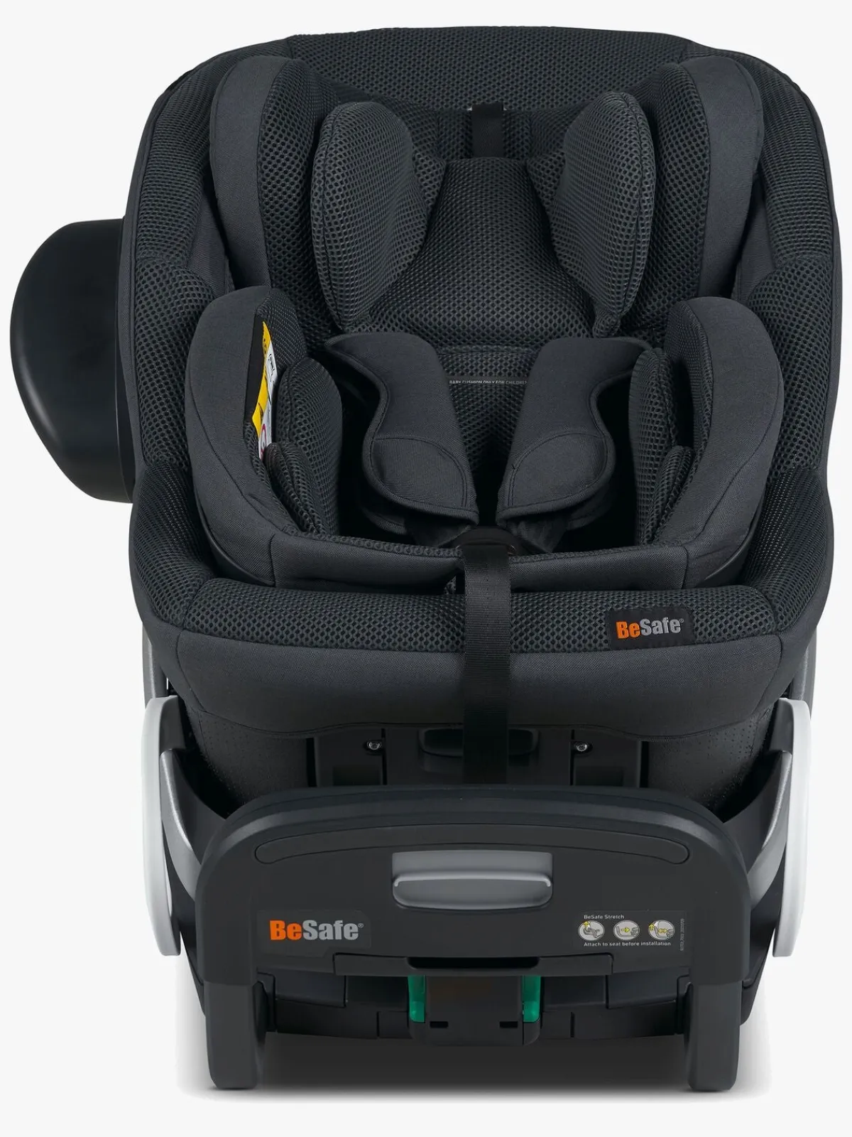 Stretch B er udstyret med Baby Shell™ og Newborn Hugger™ der giver sikkerhed, stabilitet og ekstra støtte til de allermindste. Den har også en indbygget EXO-skal som beskytter barnets rygrad og sørger for at barnet forbliver i samme position under en eventuel kollision.