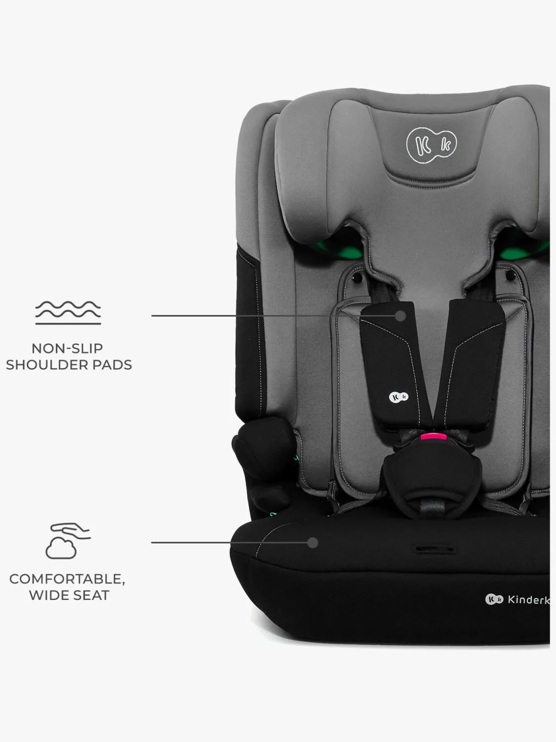 – Højdejusterbar nakkestøtte.
