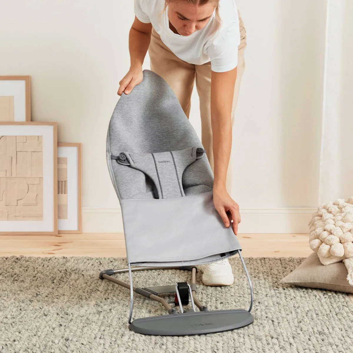 Til skråstolen medfølger et legetøj med bjælde og hængende farverige figurer, der stimulerer dit barns lyst til at lege. Gennem legen lærer dit barn også sin krop at kende, og udvikler sin motorik. Legetøjet passer til alle BabyBjörns skråstole. Det sættes sikkert fast på en måde så dit barn ikke selv kan tage det af. For en voksen er det enkelt at sætte det fast og tage det af.