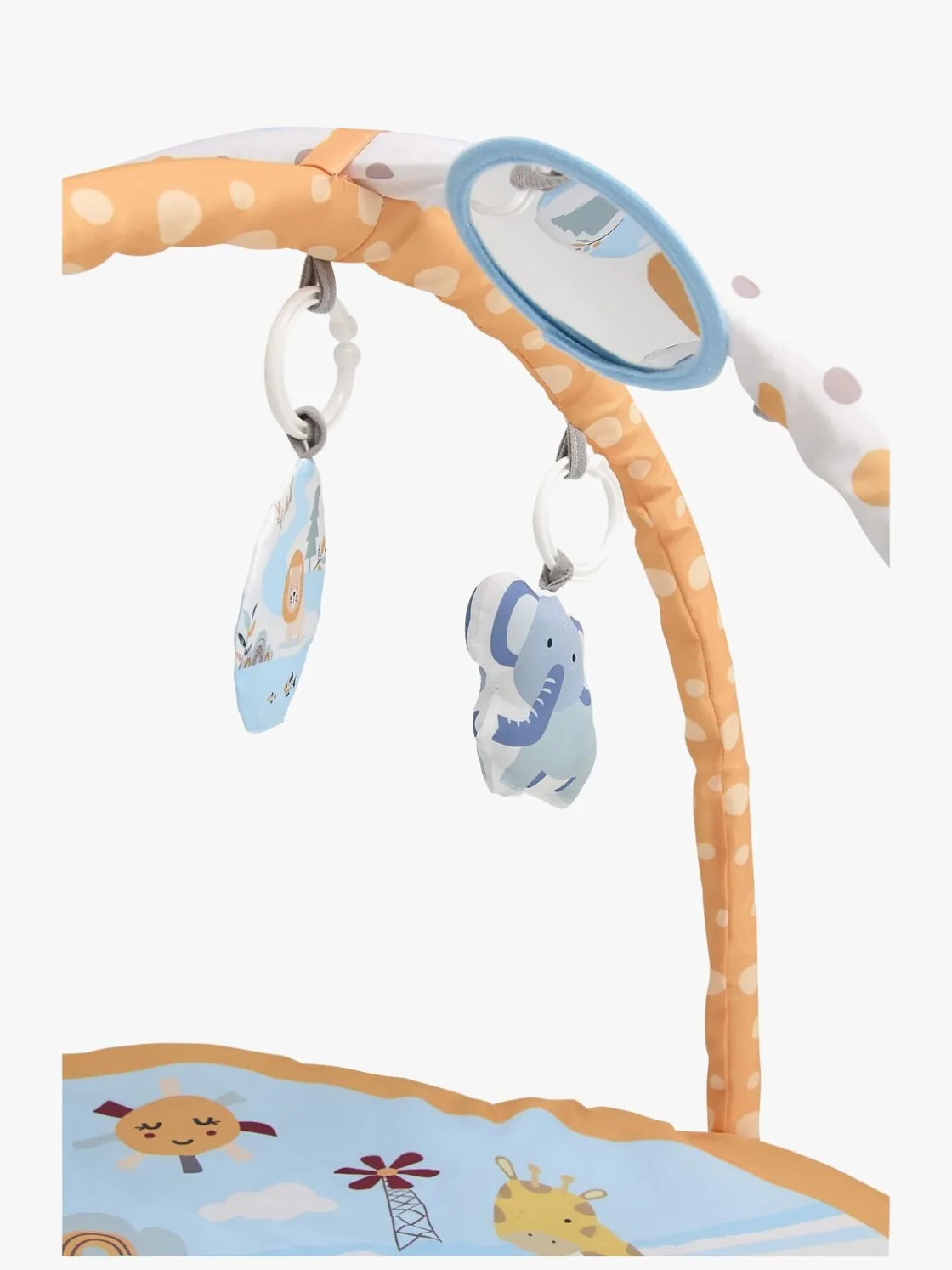 – Sjove farver og et spejl til visuel stimulering.