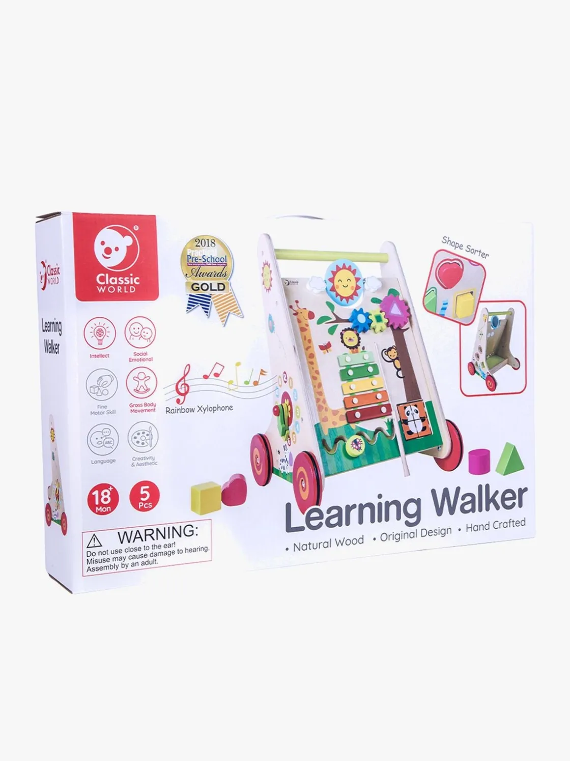 – Inkl puttekasse, et puslespil, xylofon og et tandhjul.