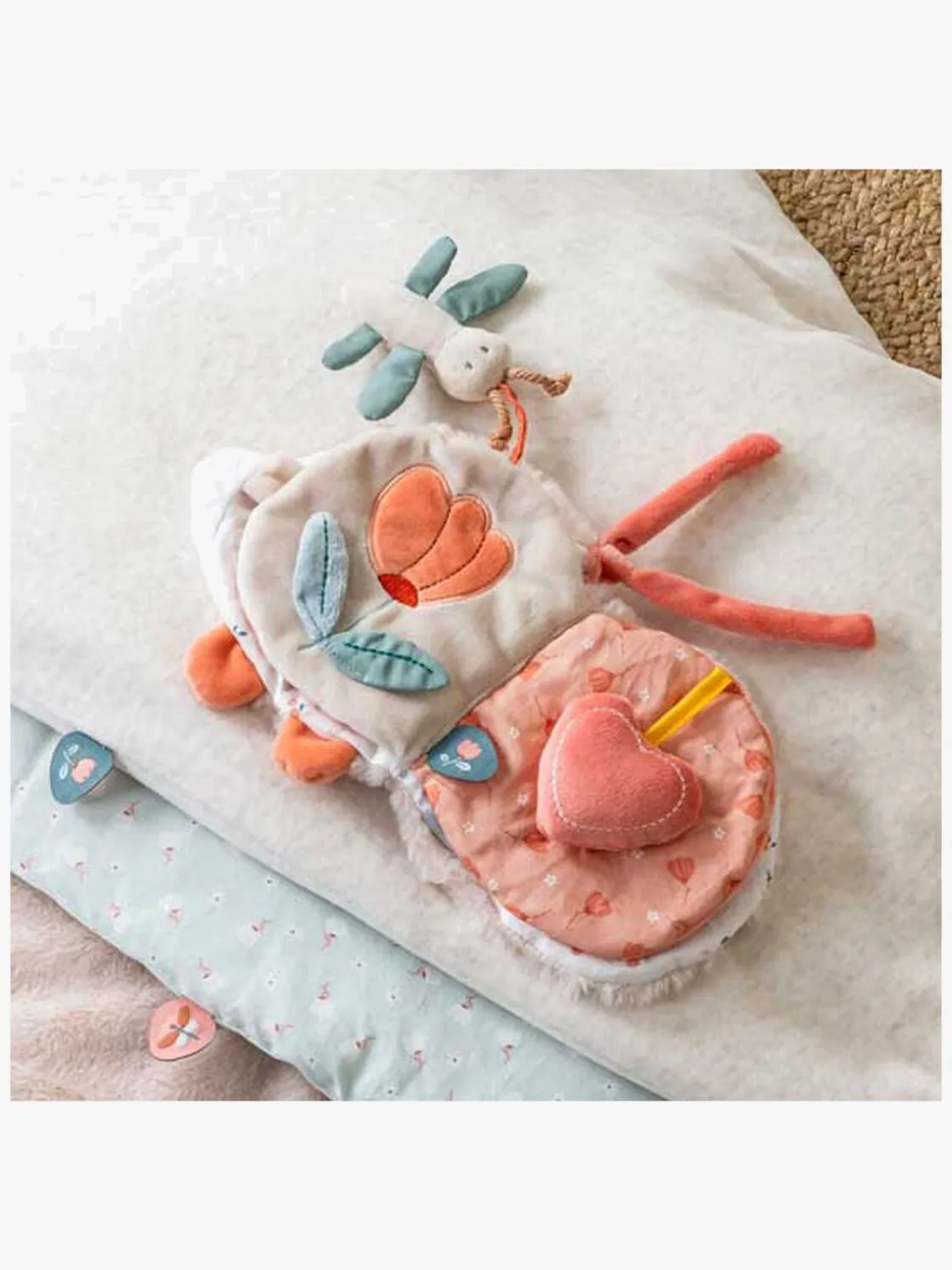 – Sjove farver og et spejl til visuel stimulering.