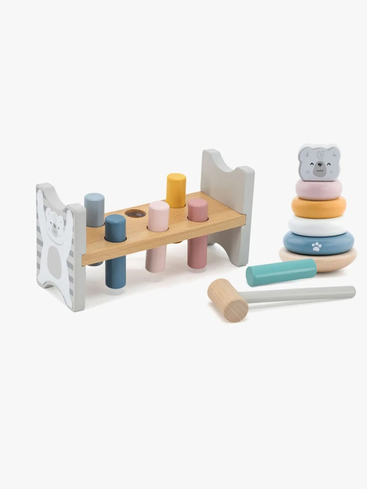 – Indeholder: 1 hammerbræt, 1 stablelegetøj, 1 hammer.
