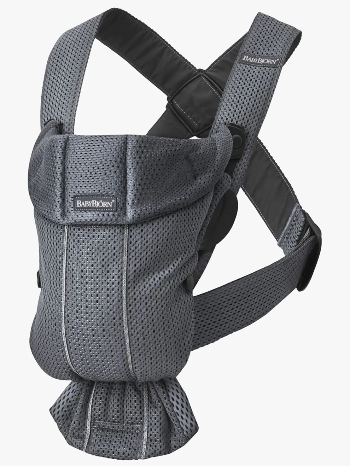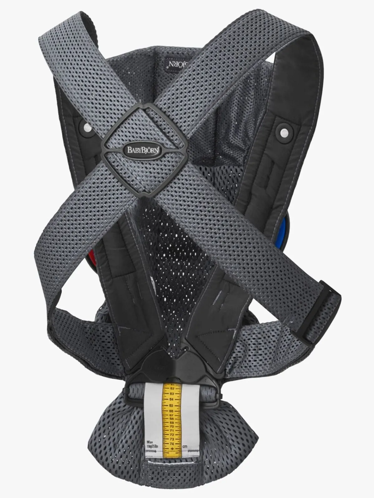 – Denne bæresele har ekstra bredde (10 cm på det bredeste sted) i forhold til Babybjörn Original. Det giver en bedre støtte til barnets ben og hofter i den indadvendte stilling.