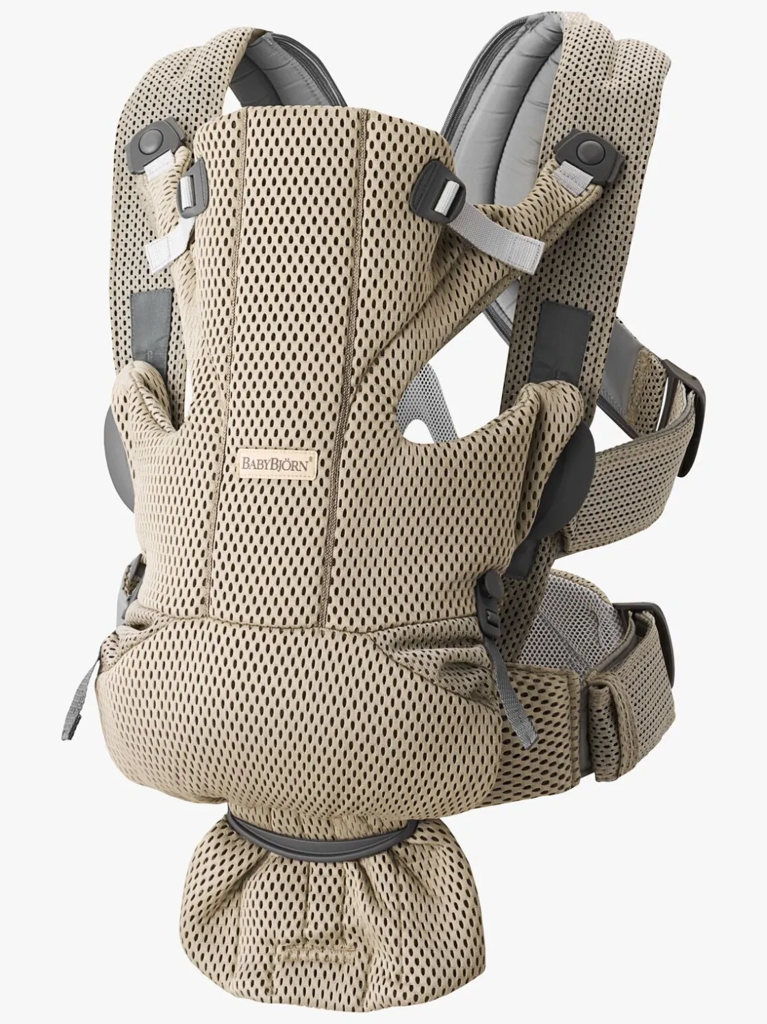 Bæreselen er fremstillet af et avanceret 3D-netstof i tre lag og i stedet for fyld, holder bæreselen sig varm med et mellemlag af tråd med en fiber. Dette gør bæreselen stabil og sørger for, at luft kan slippe igennem, så den holder den rigtige temperatur for dit barn.