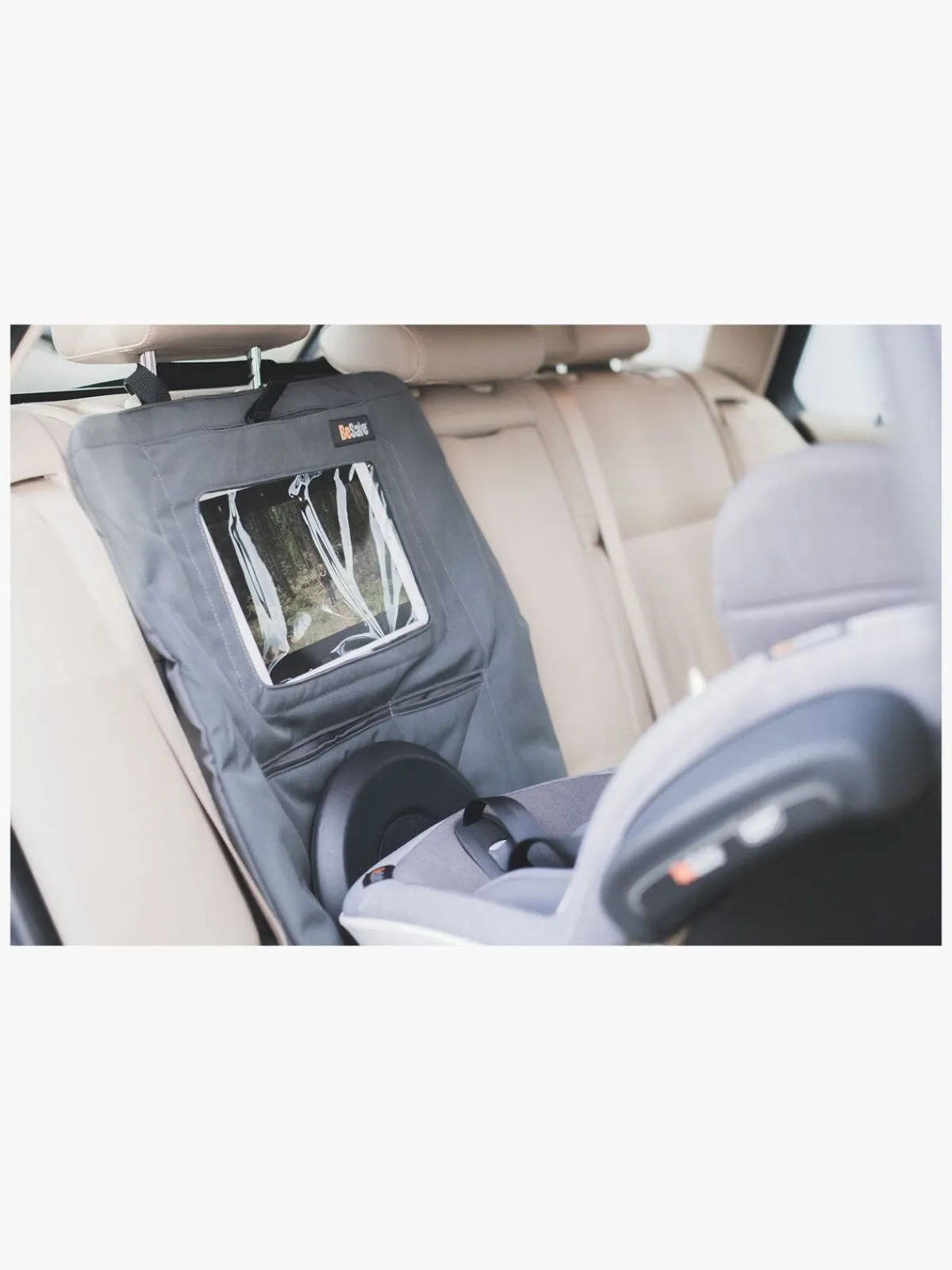 Sædebeskytteren har en smart gennemsigtig lomme til en tablet og små mindre lommer med velcrolukning, hvor der kan blive plads til opbevaring af alle småtingene. Praktisk og smart når hele familien skal på tur!