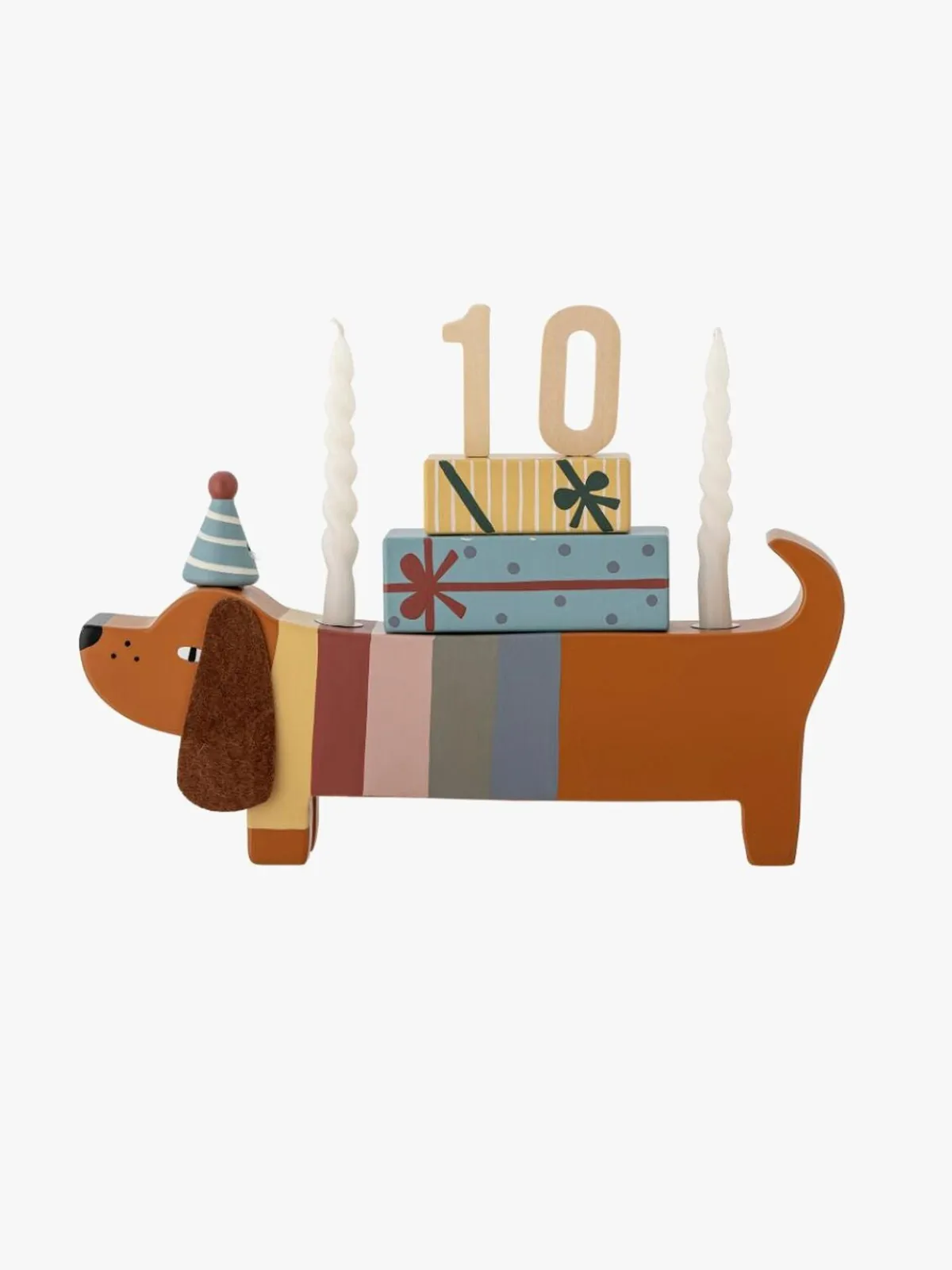 – Fødselsdagsdekorationen passer til to tal og to lys.