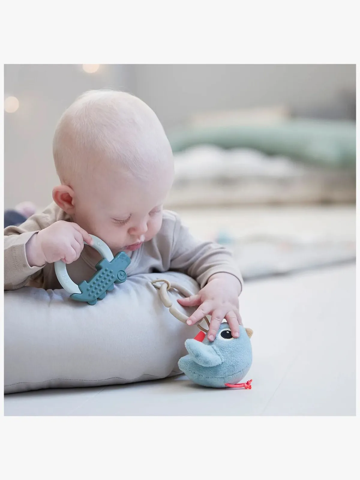 – Bøjlen er aftagelig og perfekt til at sætte din babys yndlingslegetøj fast på.