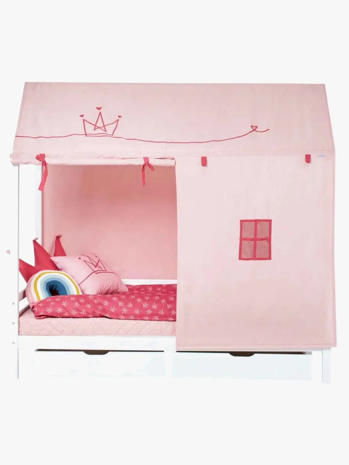 Sengens form indbyder til fantasifulde lege, og du kan let dekorere både indersiden og ydersiden. Supplér gerne med sengeskuffer til opbevaring eller med et sengegardin for at gøre sengen ekstra hyggelig.