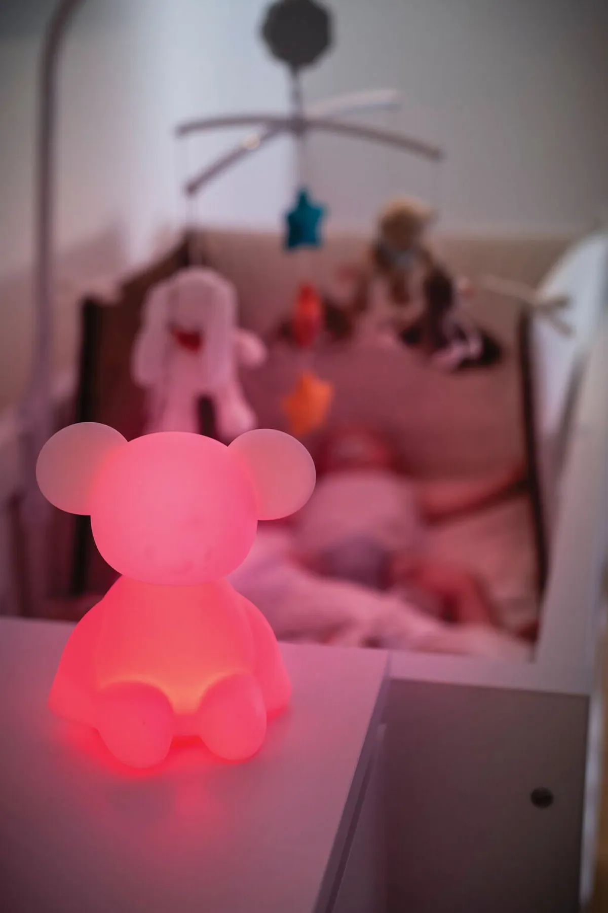 Natlampen oplades med et mini-USB kabel (medfølger). En opladning rækker i op til 12 timer.