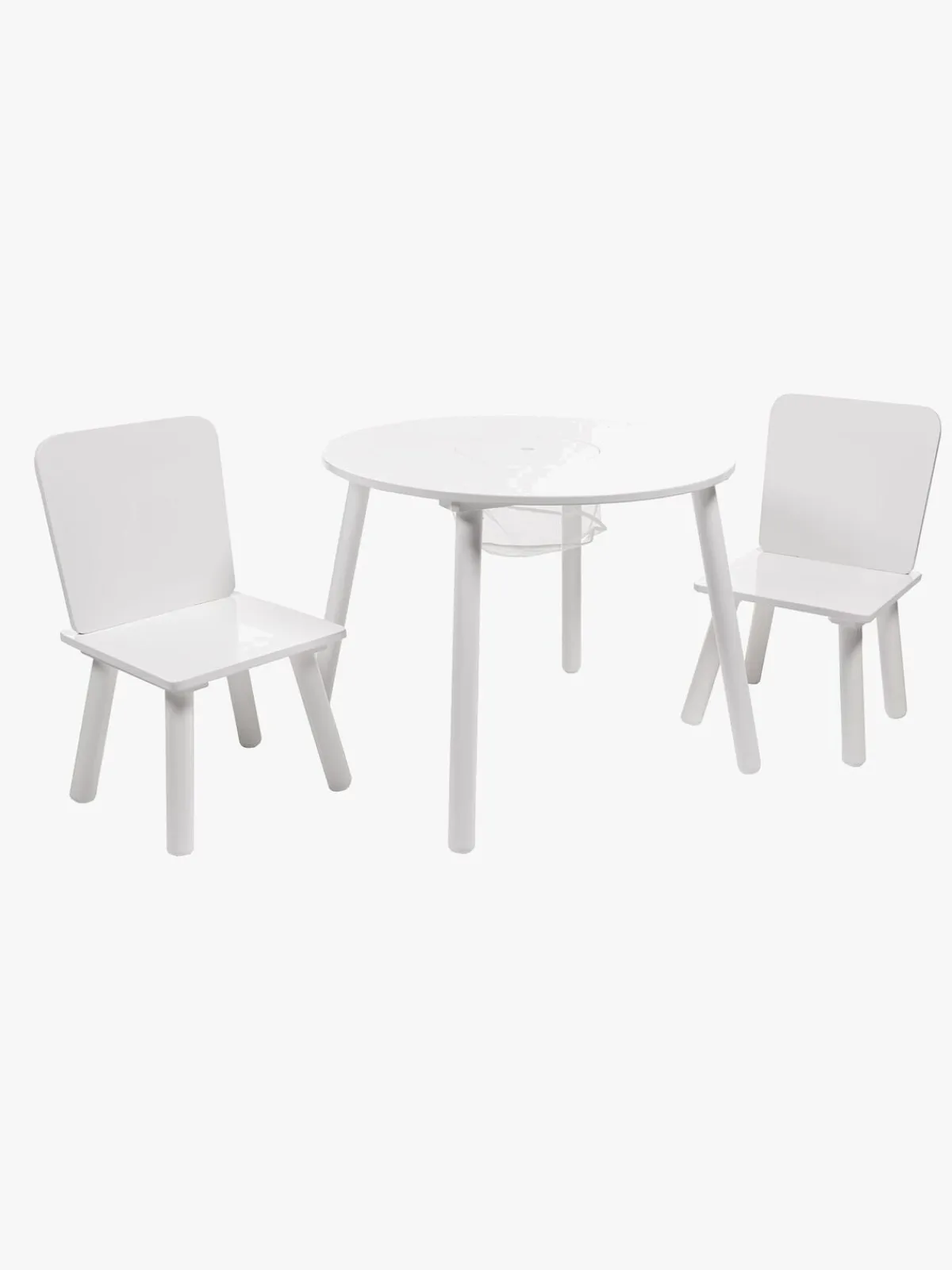 | Øvrige mål | Bord: Ø60 x H47 cm Stole: H52 x B28 x D28 cm Sædehøjde: 24,5 cm. Maksimal belastning pr. del: 25 kg |