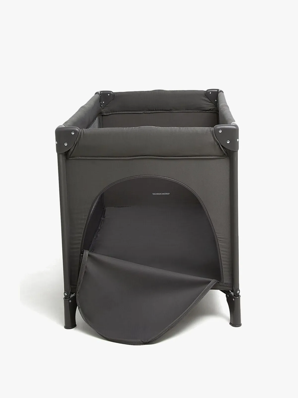 – Quickfold sammenfoldningssystem – blot træk i stroppen i bunden for at folde sengen sammen og tryk bunden ned for at folde den ud.