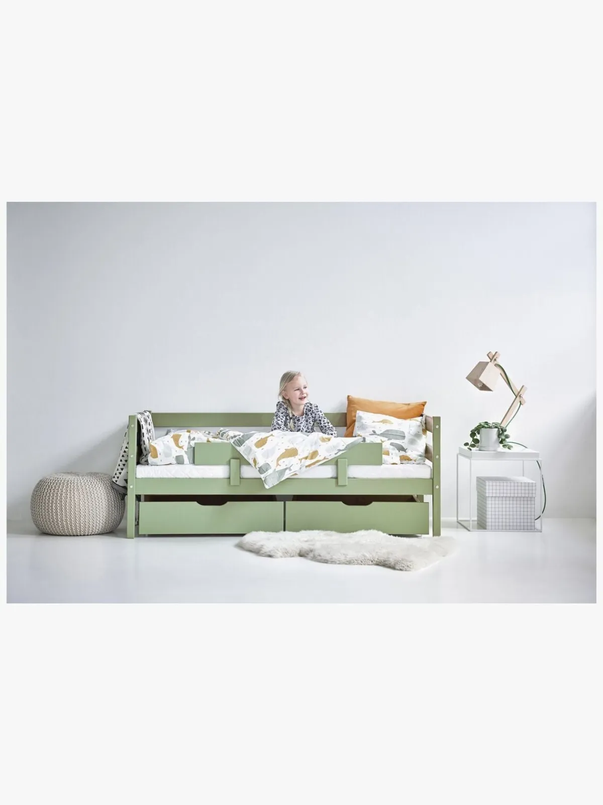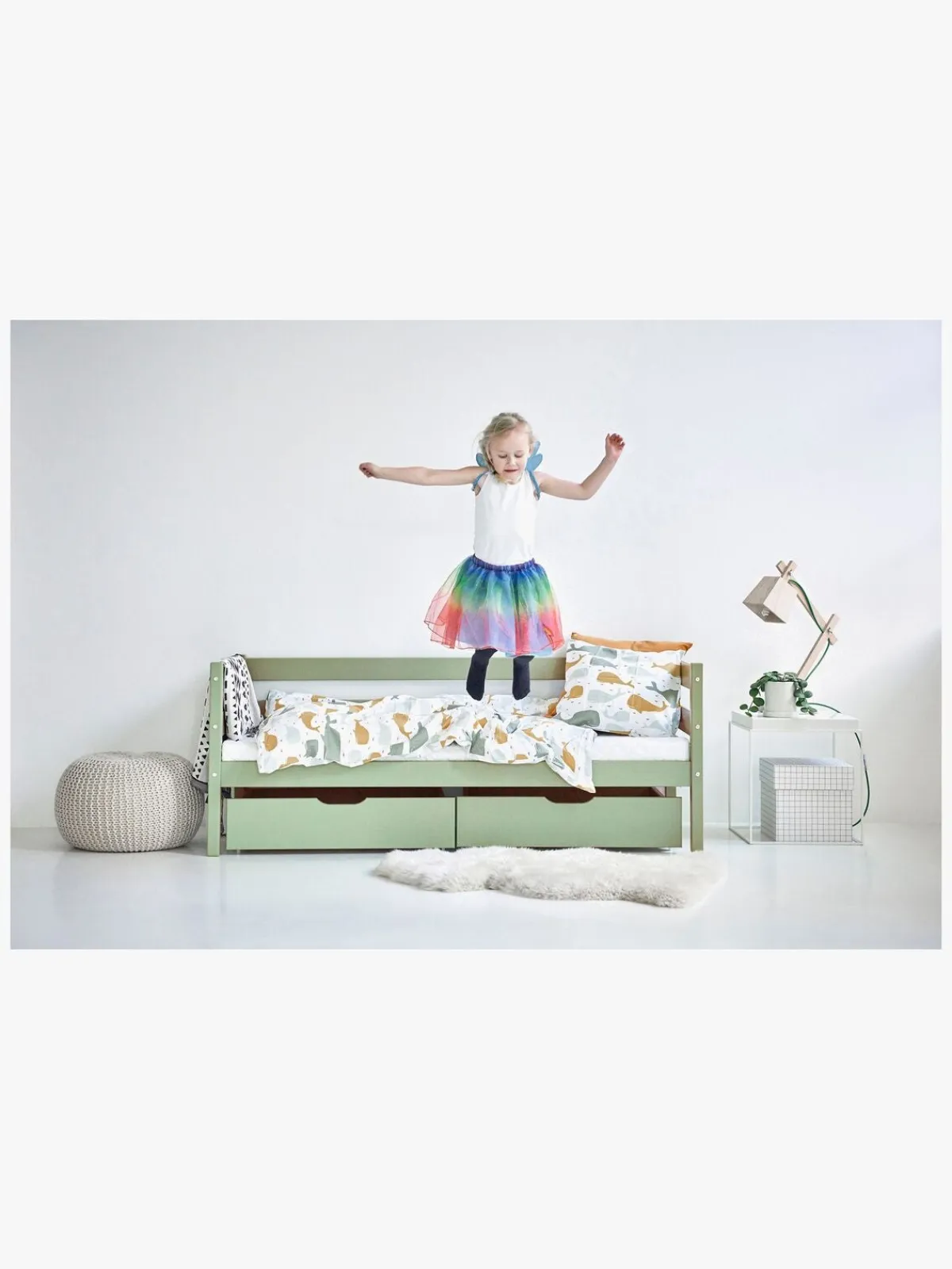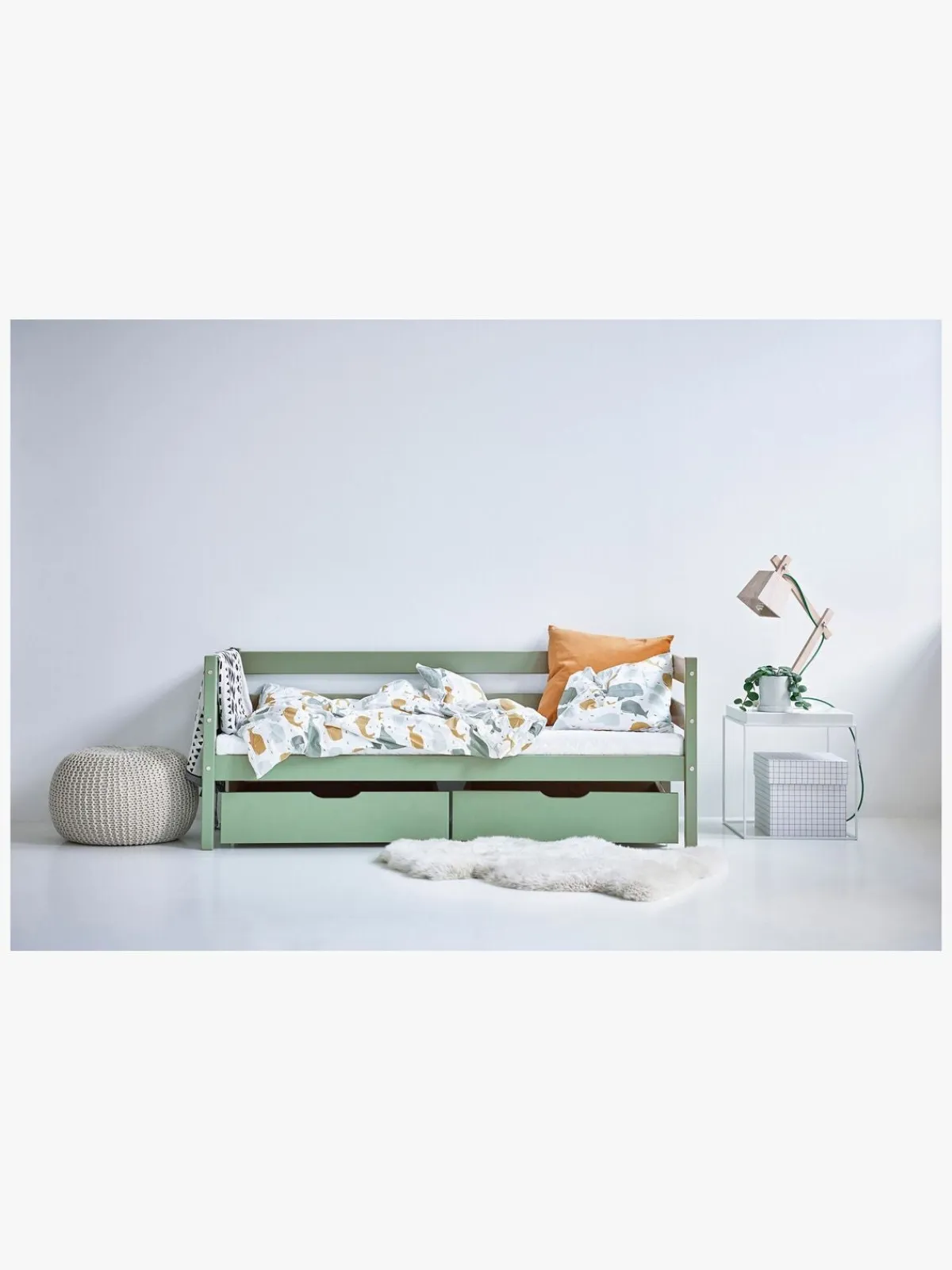 Skufferne passer under Hoppekids senge med madrasstørrelse på 70 x 160 cm.