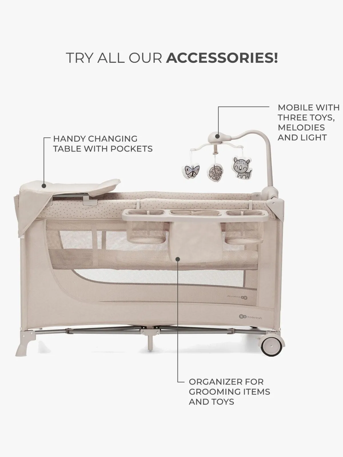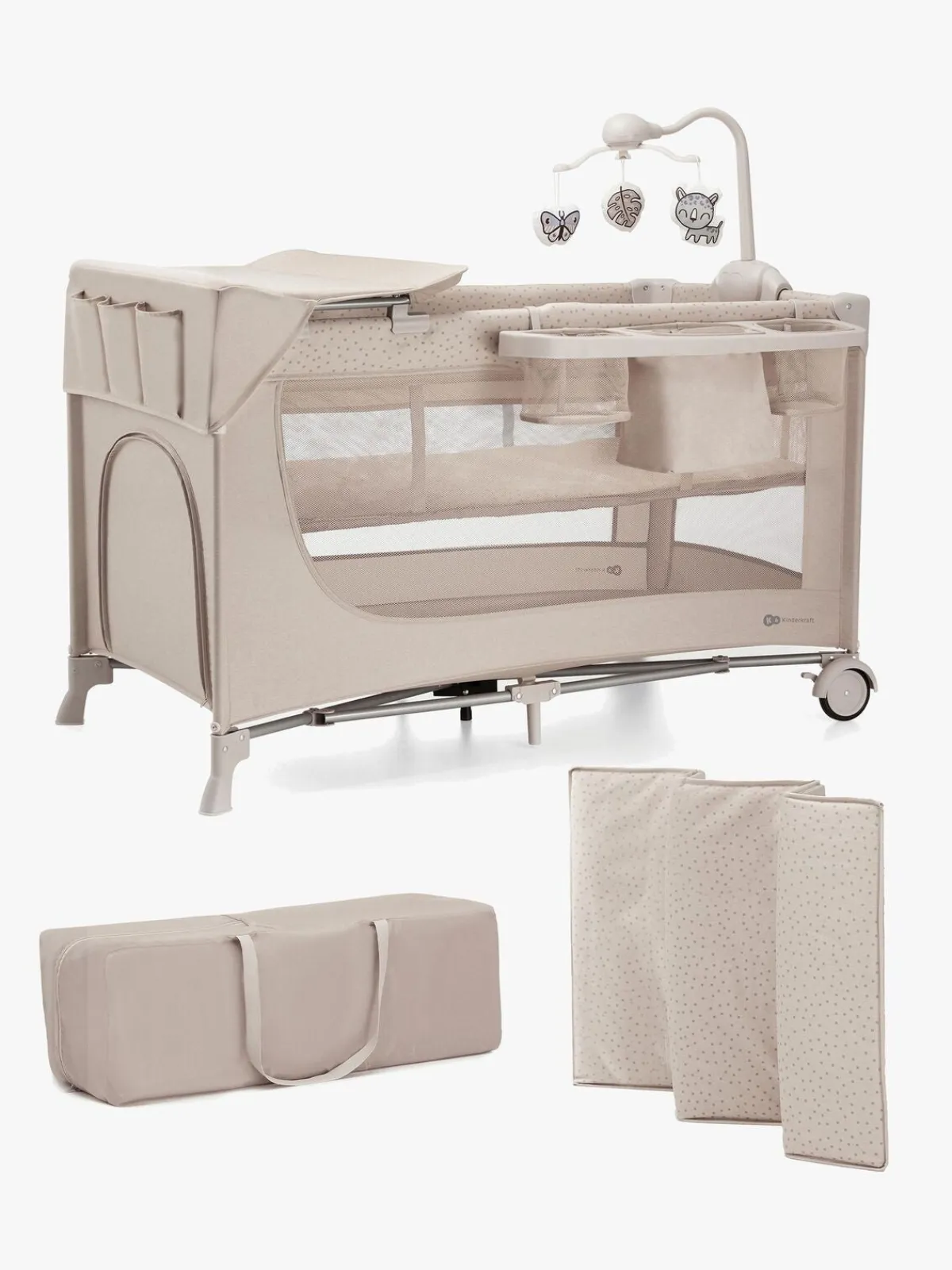 – Inkluderer: transporttaske, madras, sengeuro, puslebord, organizer.