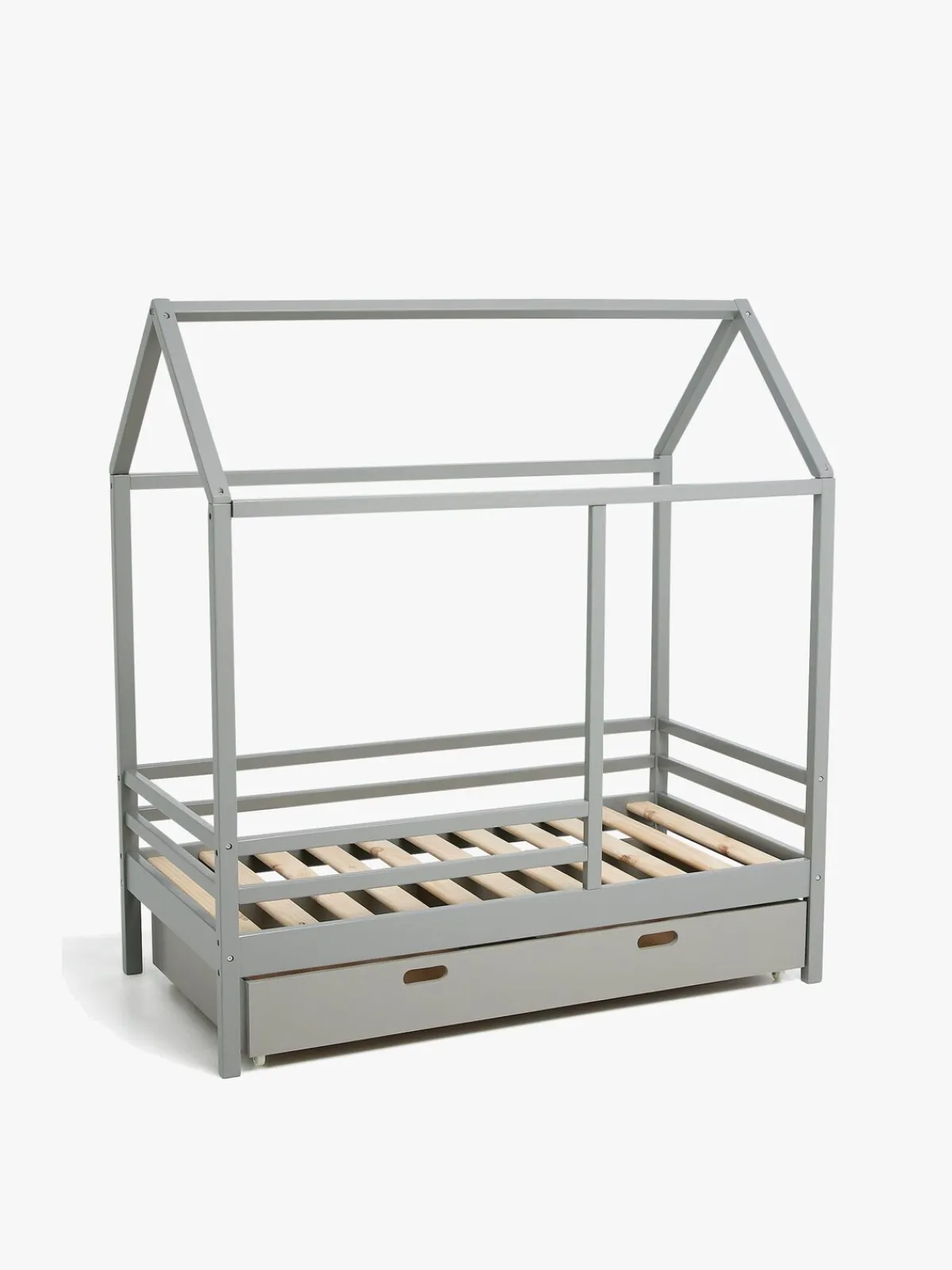Sengeskuffen har hjul på undersiden og to store rum til alle barnets ting og to praktiske håndtag.