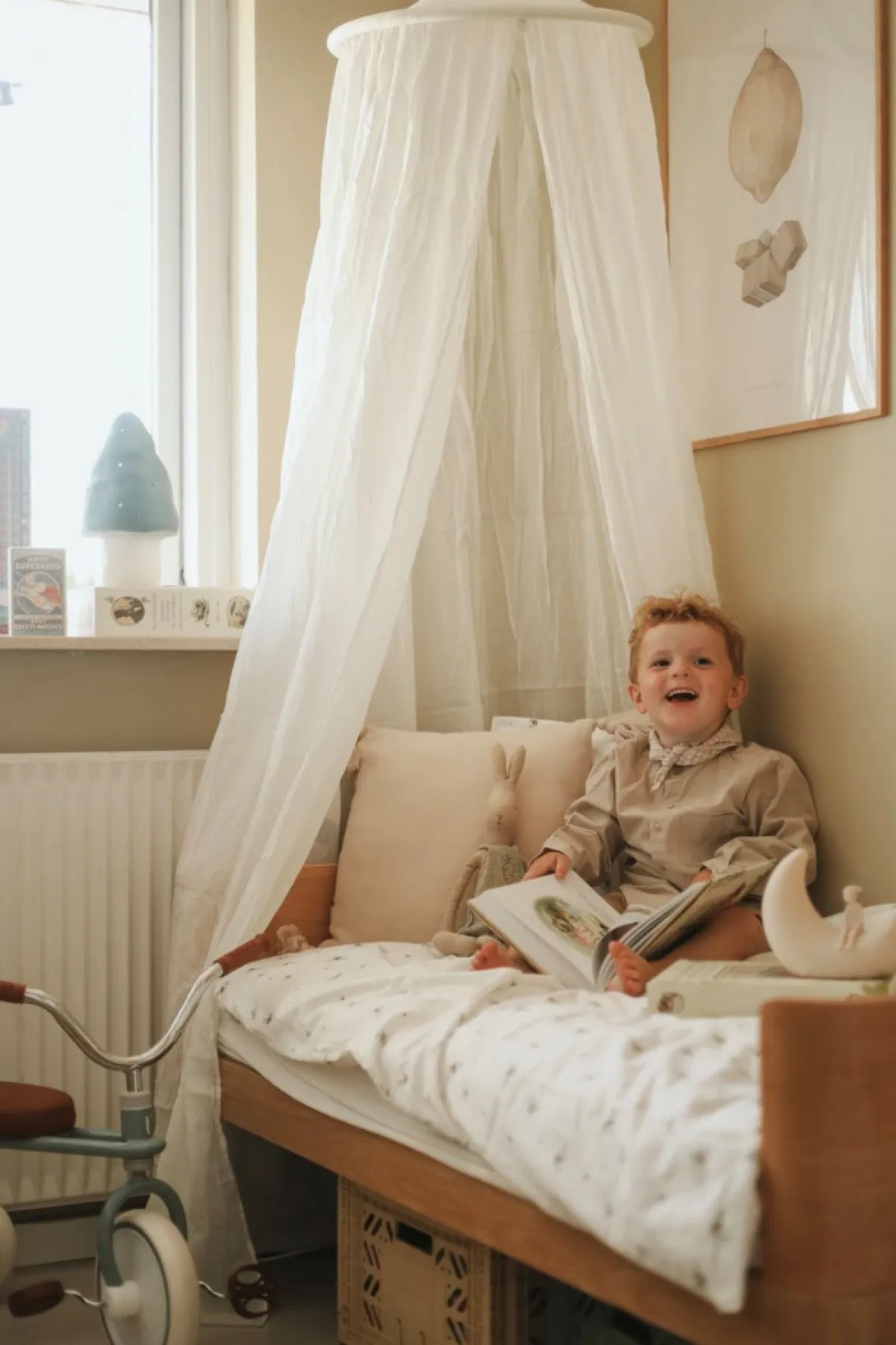 – Sengehimlen falder smukt ned over sengen og skaber en hyggelig hule til dit barn.